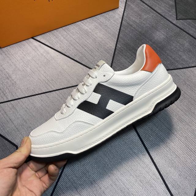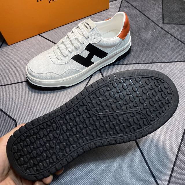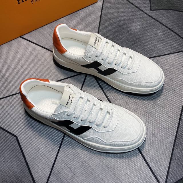女 男 皮+10 Hermes 顶级版本# 爱马仕h家经典情侣款 休闲运动鞋...