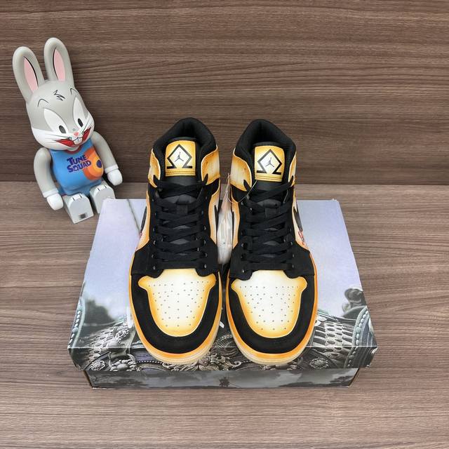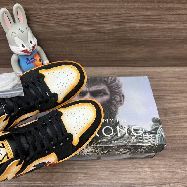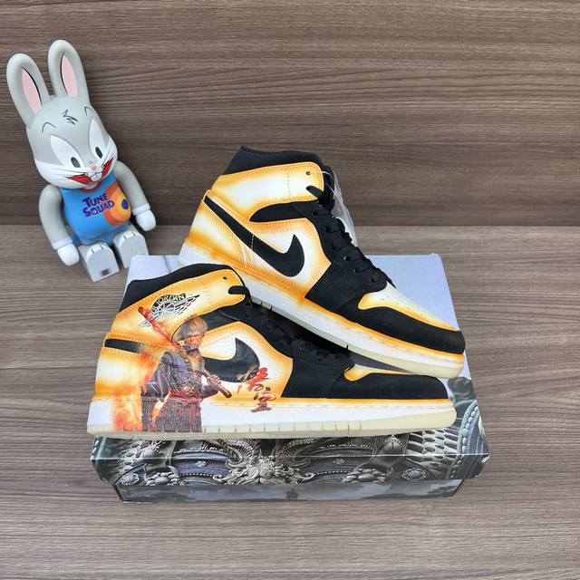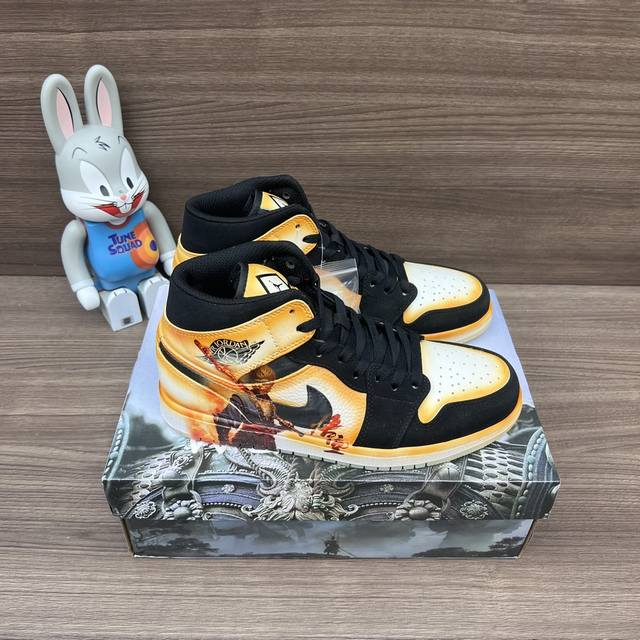 顶级版本Air Jordan 1 Mid 猴王黑悟空原装模原大底 DDD 全鞋原厂制定皮料,手感细正腻确折边工艺 完美节细诠释。 DDD 包装:全套得物配件加固