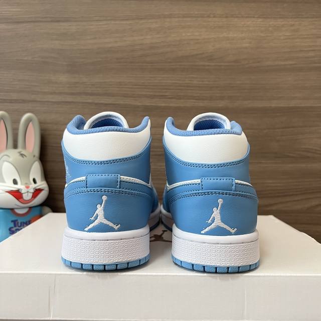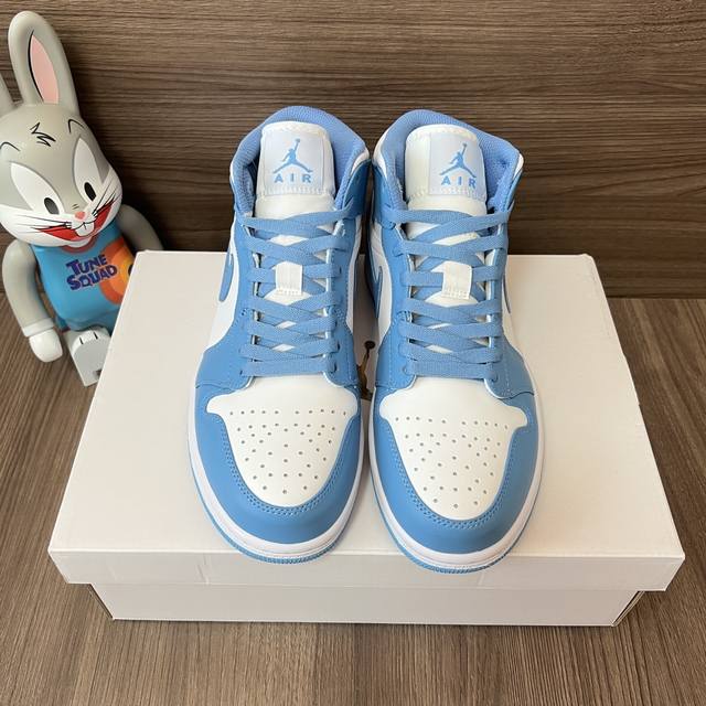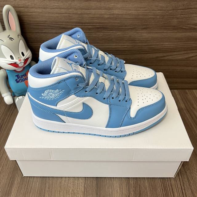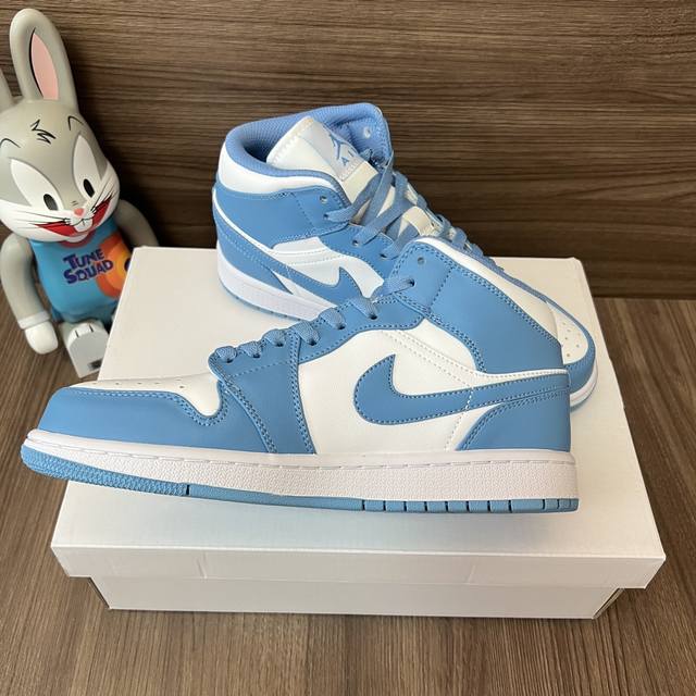 顶级版本Jordan Air Jordan 1 Retro Mid Unc中帮复古篮球鞋男款白蓝。 DDD 码数:36-46码 DDD 编码: 554724-1