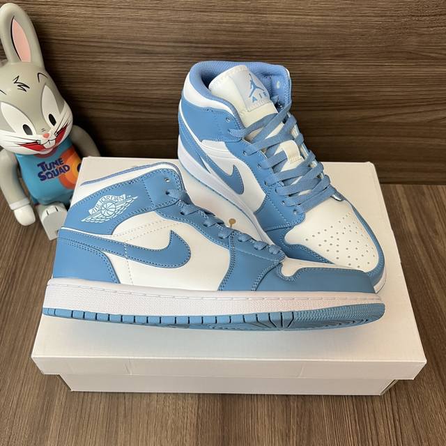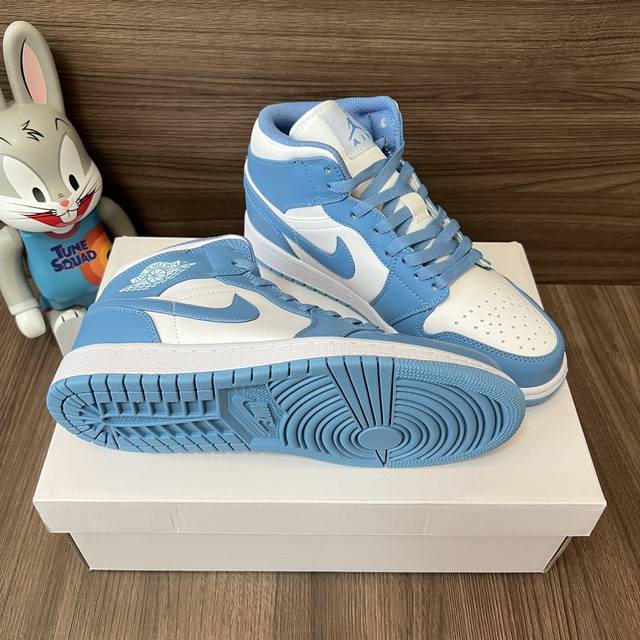 / 顶级版本Jordan Air Jordan 1 Retro Mid Unc中帮复古篮球鞋男款白蓝。 DDD 码数:36-46码 DDD 编码: 554724-1