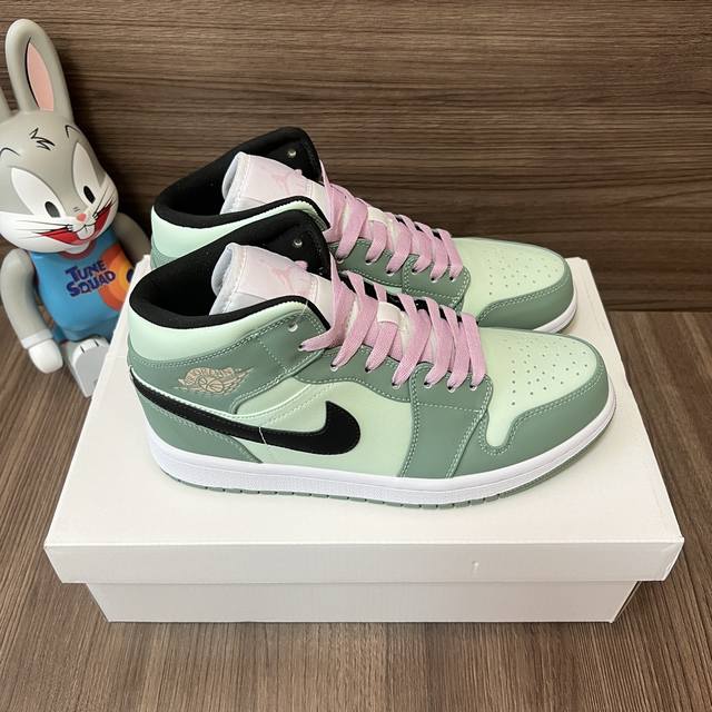 顶级版本Jordan Air Jordan 1Mid Se Dutch Green 中帮复古篮球鞋女款白绿粉。 DDD 码数:36-46码 DDD 编码: Cz