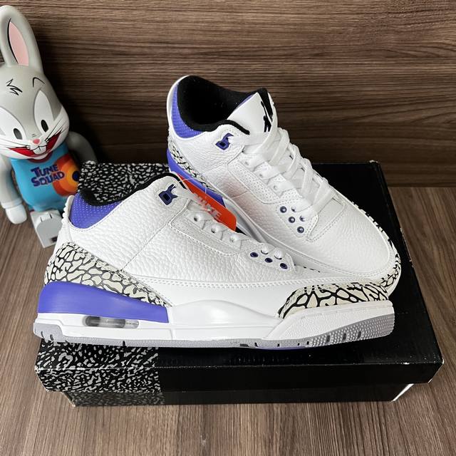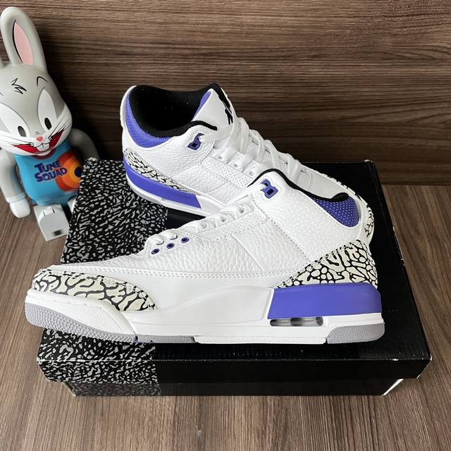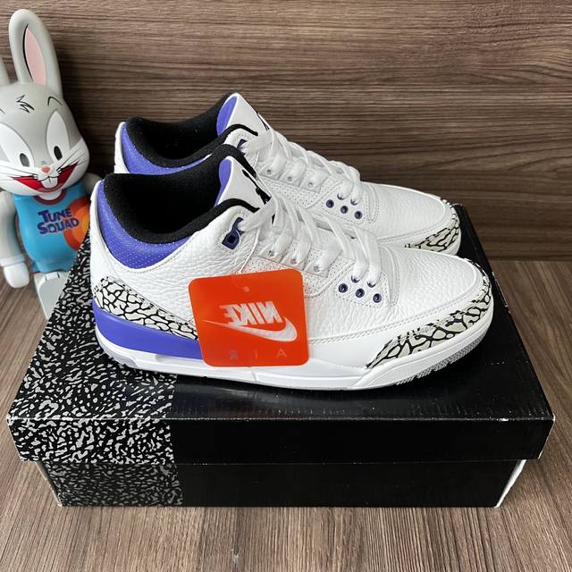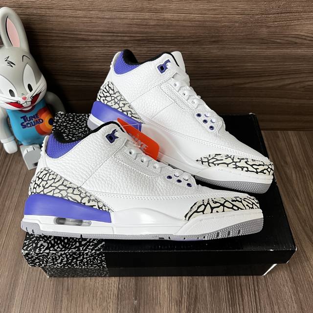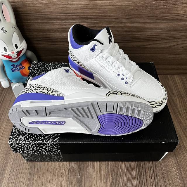 顶级版本Jordan Air Jordan 3 Retro Dark Iris 耐磨中帮复古篮球鞋男款白紫。 DDD 码数:36-47 含半码 DDD 编码: