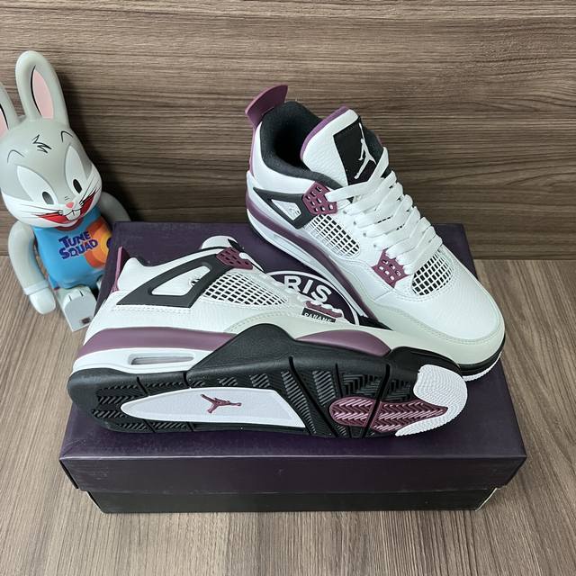 / 顶级版本Jordan Air Jordan 4 Retro'psg'paris Saint-Germain波尔多大巴黎中帮复古篮球鞋男女同款白紫。 DDD 码数