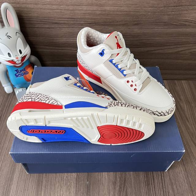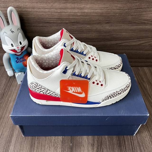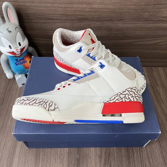 / 顶级版本Jordan Air Jordan3 Retro International Flight独立日爆裂纹独立日 爆裂纹 防滑减震 高帮复古篮球鞋男女同款白