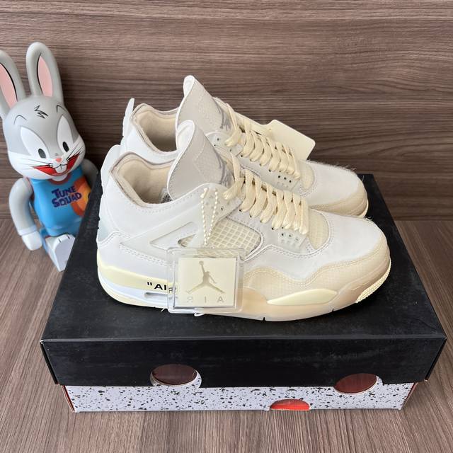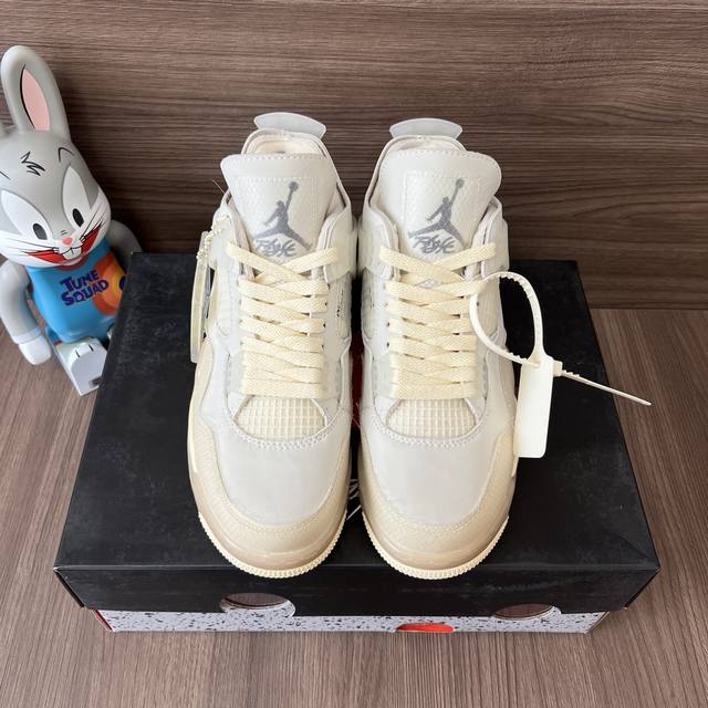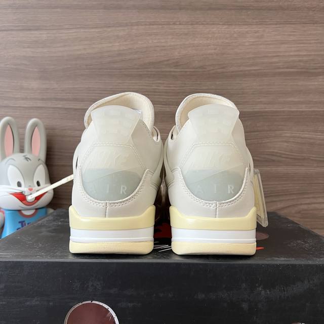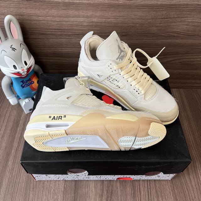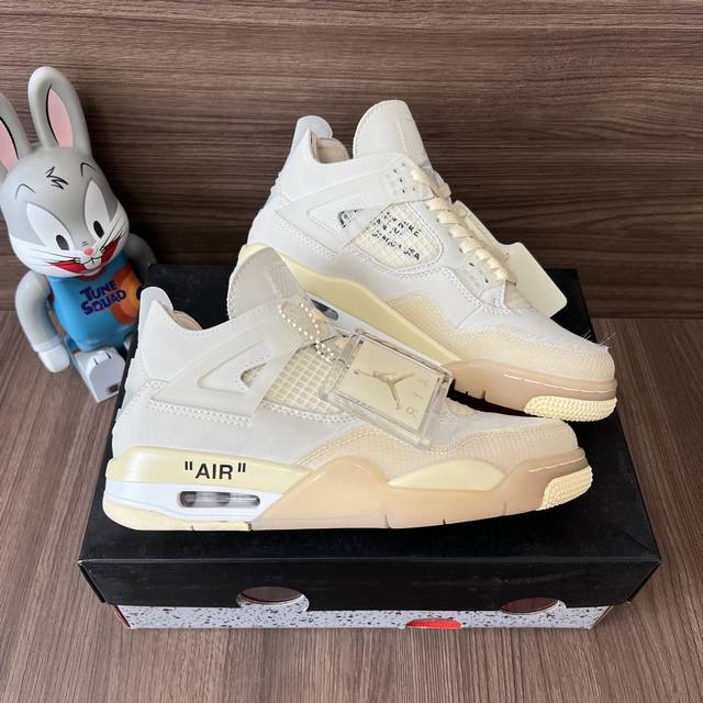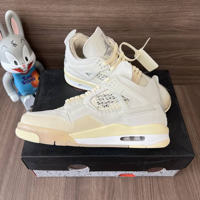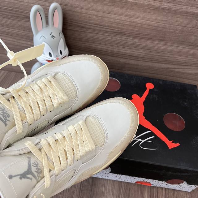 顶级版本Off-White X Jordan Air Jordan 4 Sail 白帆 高帮复古篮球鞋男女同款米白联名款。 DDD 码数:36-46码 含半码
