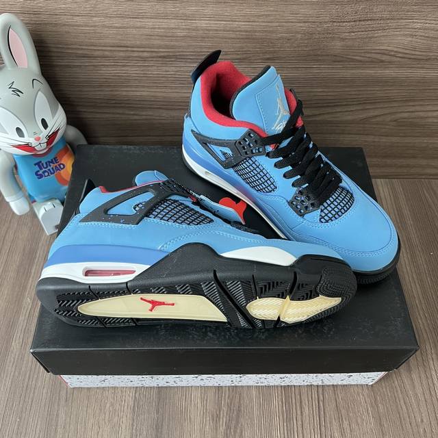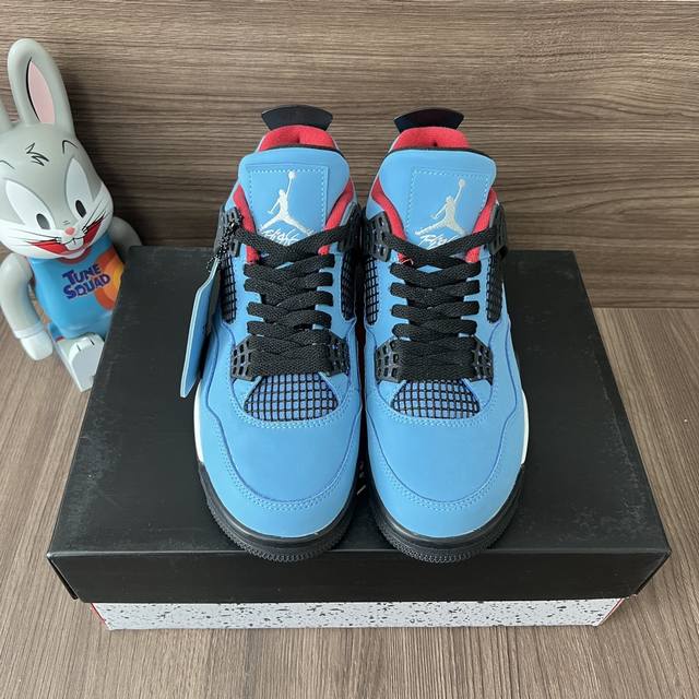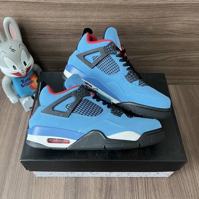 / 顶级版本Travis Scott Cactus Jack X Jordan Air Jordan 4耐磨 高帮复古篮球鞋男款 冰蓝。 DDD 码数:36-46码