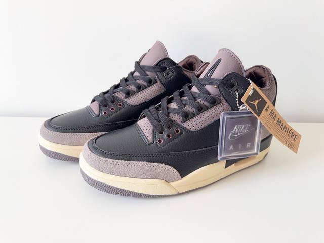 A Ma Maniere X Jordan Air Jordan 3 “Black” 舒适简约 耐磨 中帮 复古篮球鞋 男 女款 黑色 36-47