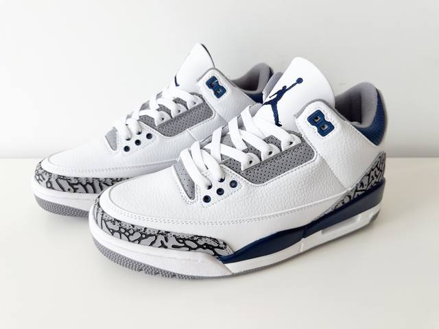 Jordan Air Jordan 3 Midnight Navy 皮革 舒适 中帮 复古篮球鞋 男女款 灰蓝36-47 DDD