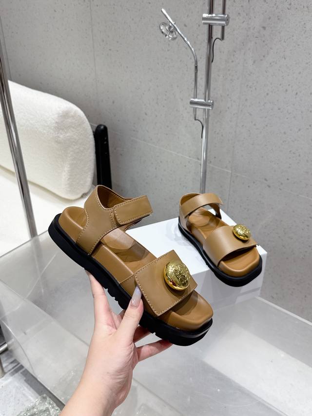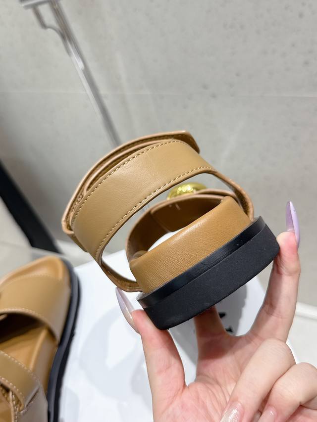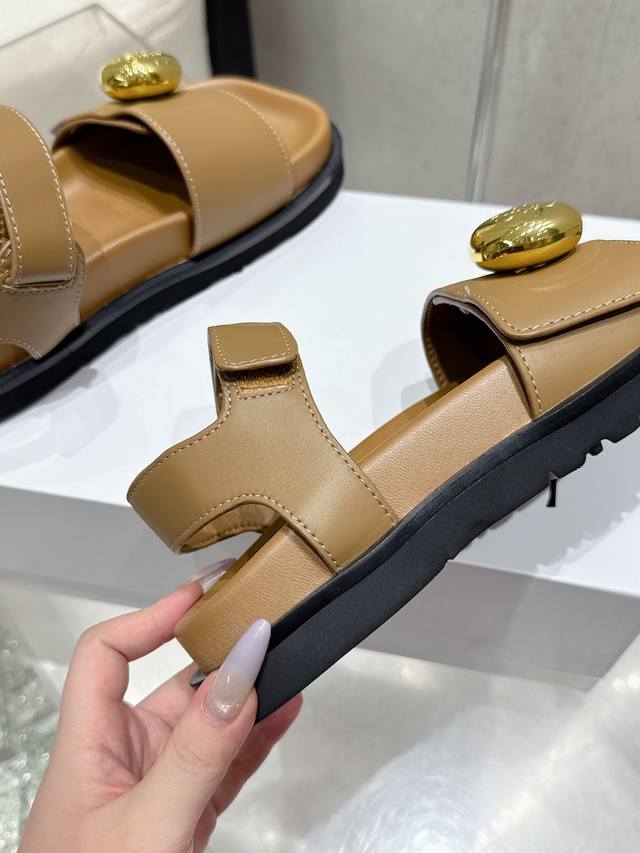 羊皮材质,舒适度极高还搭配了两条扣环的鞋带 非常具有辨识度,美貌与实用并存!是兼具百搭、舒适、时尚感&慵懒感凉鞋,几乎挑不出毛病,经典搭扣元素装饰,随便穿搭就可以很高级!款式简约大气,上脚非常显气质,颜色也很耐看漂亮!日常