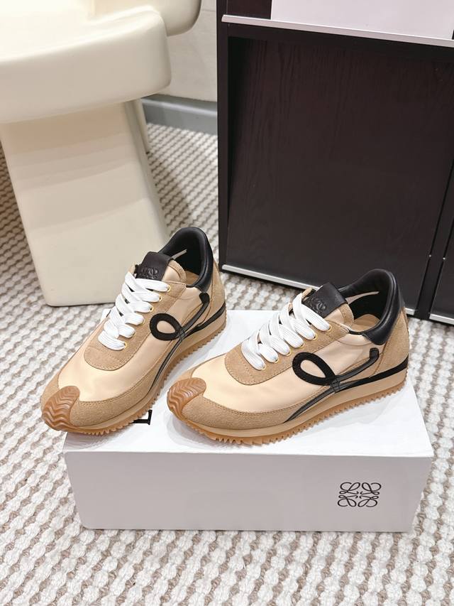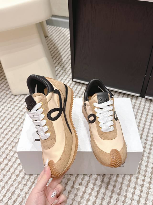 FFF 代购级 DDD Loewe Flow Runner 经典 情侣款 增高 休闲鞋 德训鞋 DDD Loewe Flow Runner德训鞋,复古阿甘鞋型,侧面灰色“L”字母超有辨识度!牛反绒+织物拼接,质感满分又透气。 DDD 内置约4.5Cm隐形增高,悄悄拉长腿部线条,日常通勤、逛街都超适合,舒适又时髦,轻松驾驭各种穿搭风格~ DDD Size :35-46 女40.41 男38.45.46订做不退换 DDD