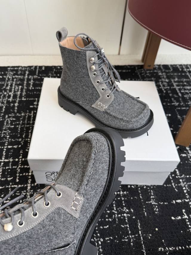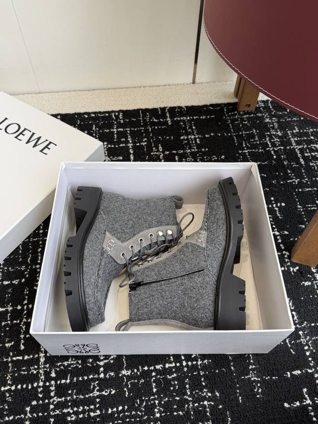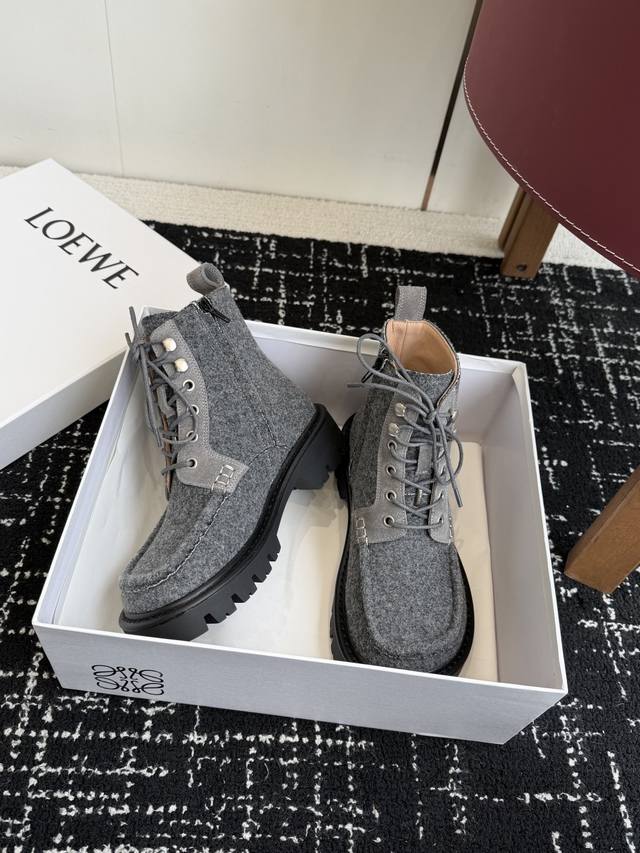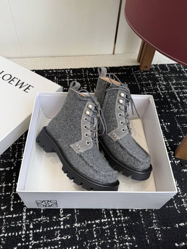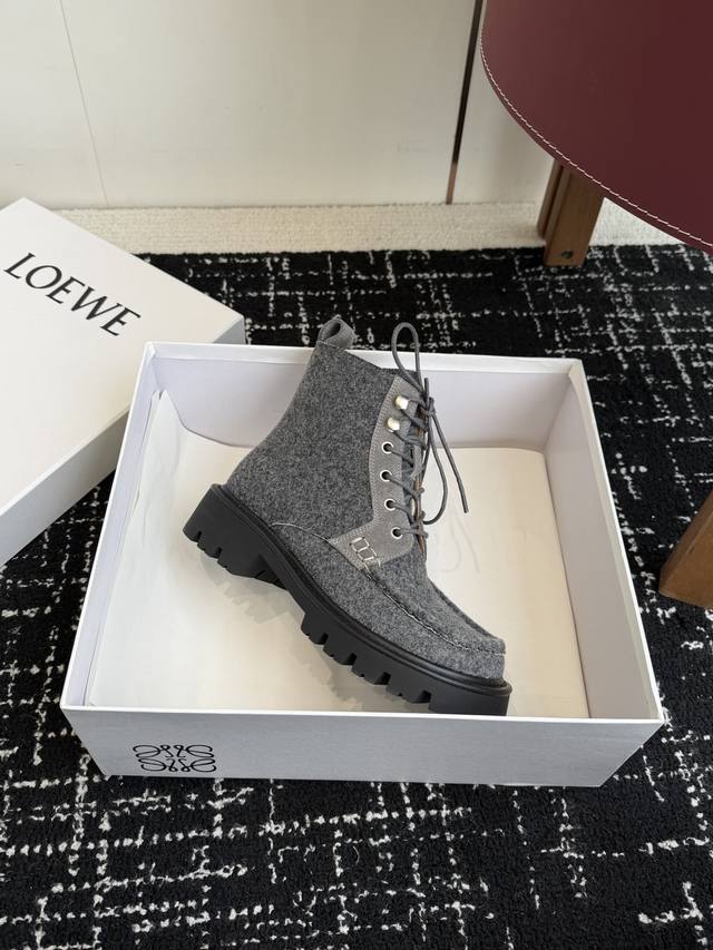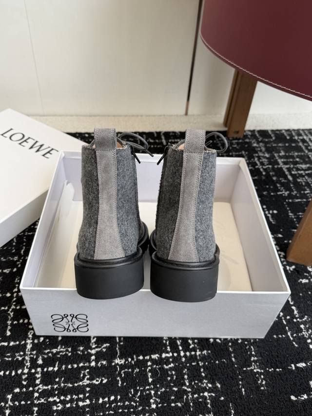 代购级 Loewe 罗意威 25Ss 秋冬新款 娃娃头 鞋带马丁靴 简约大气时髦 耐看不过时 是时尚圈永不退潮的经典所在 复古的英伦风格 让你穿出不一样的气质.