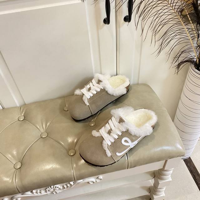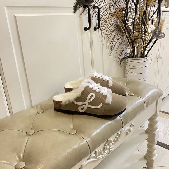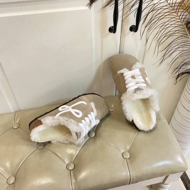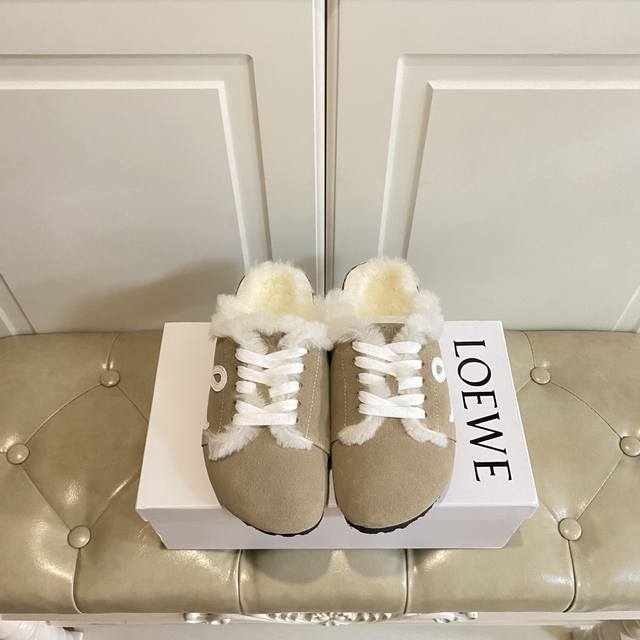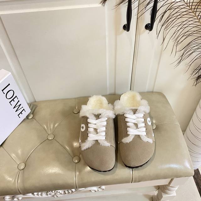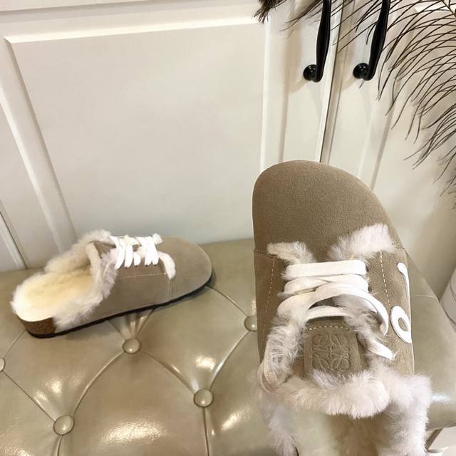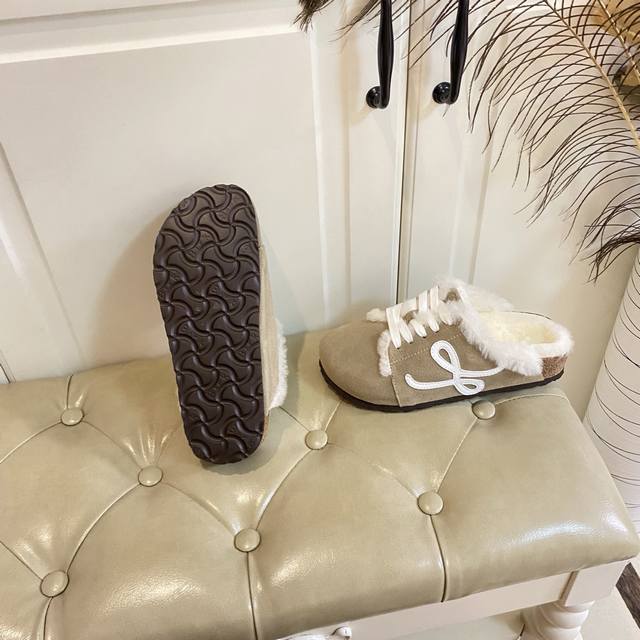 出厂价P ,罗意威Loewe&勃肯Birkenstock联名款情侣拖,反绒面,羊毛里,35-45码