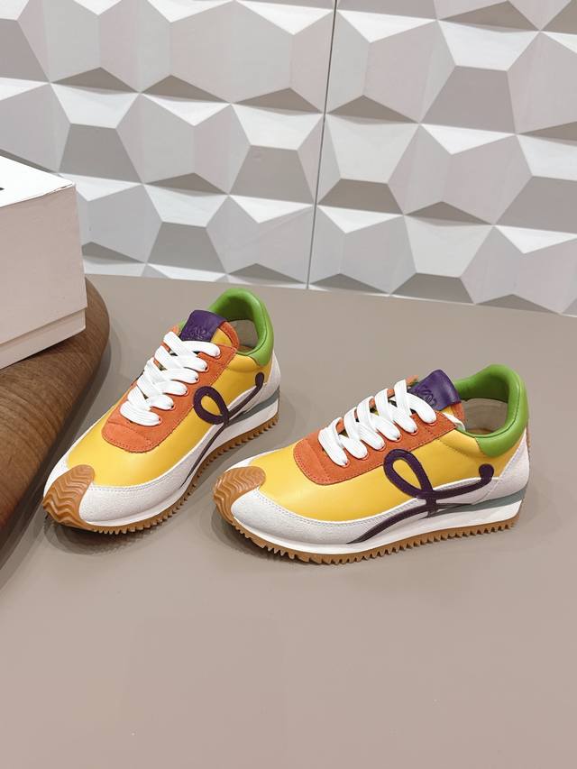 FFF 出厂: 情侣 独家顶级版本 长期做货 DDD Loewe罗意威德2026Vs四季经典情侣德训休闲系列 DDD 情侣拼色德训鞋 DDD 全网最快购入原版开发,穿几年不过时的,超级经典系列,网红最热爱的打卡神鞋,最快出货,独家原版一比一开模,所有材料,细节根Zp原版无差别,请认准高市场上最高版本 DDD 面料: 原版定制牛猄 高丝光莱卡布搭配 DDD 内里: 原版定制羊皮 DDD 垫脚: 原版定制牛皮注塑成型垫 DDD 大底: 原版开模多层组合底 DDD 包装: 原版全套包装 DDD 码数: 35-4