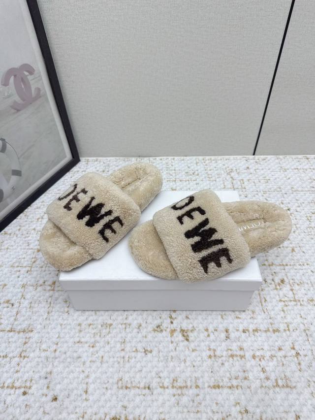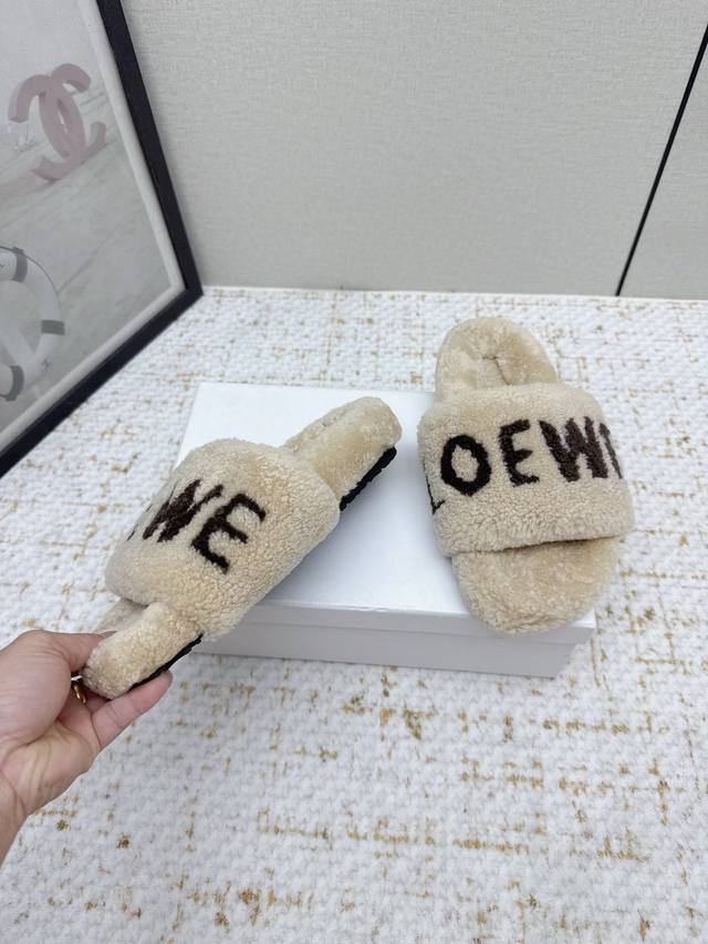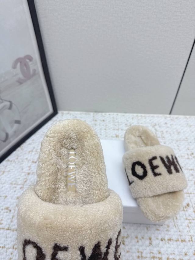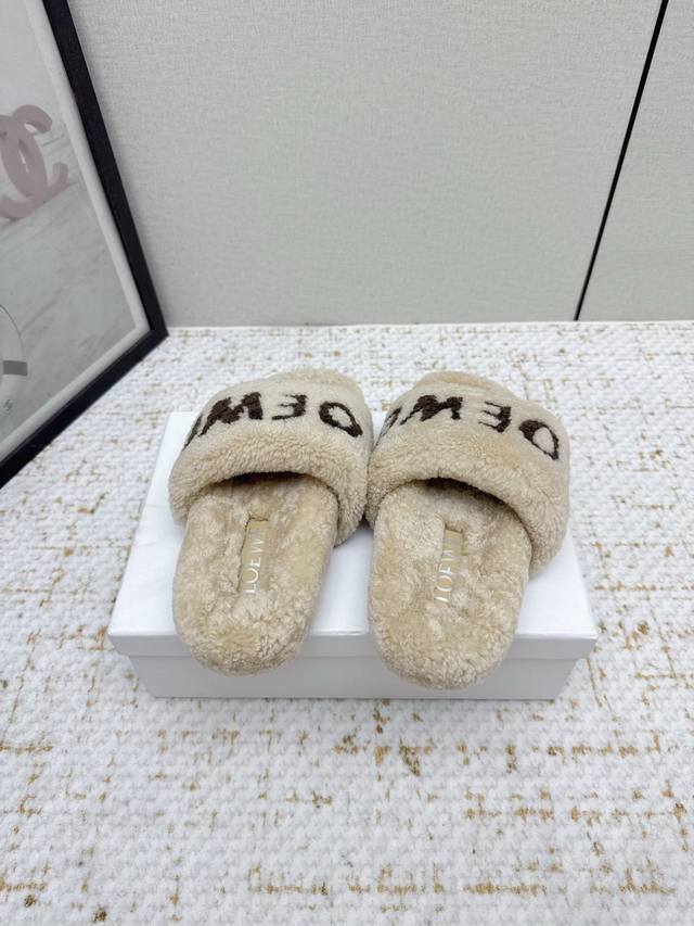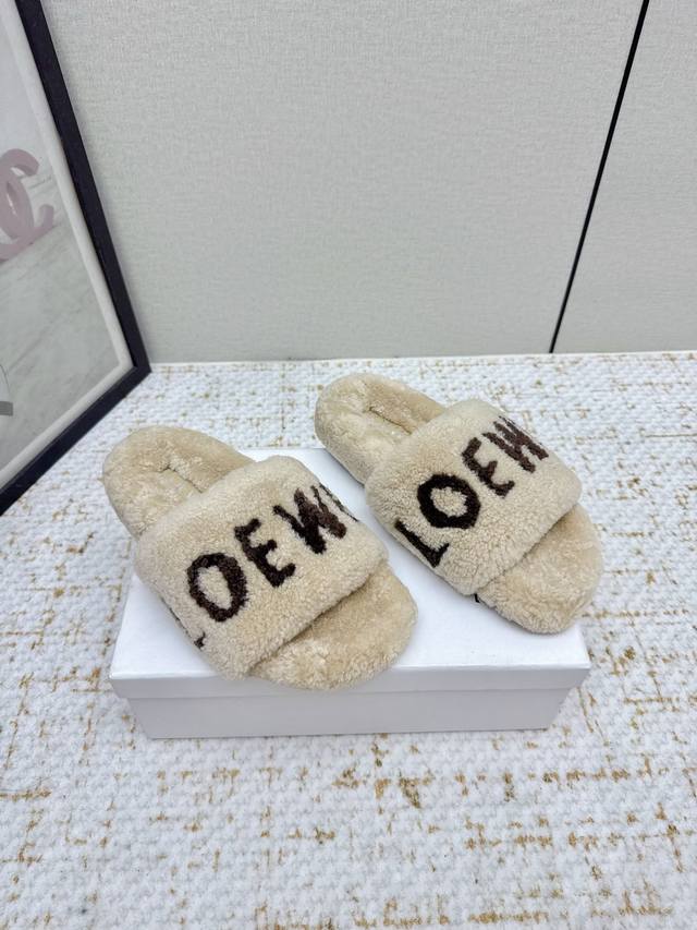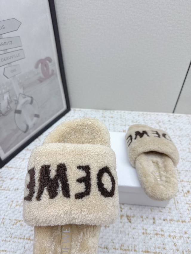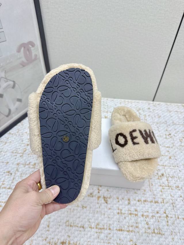 出厂 高版本 Loewe罗意威 25 最新 秋冬字母毛毛拖鞋 这季节美鞋太多这款毛拖 真的是让我无法自拔真太可爱了~ 毛茸茸的羊毛是选用欧洲进口A级羊毛 我们做
