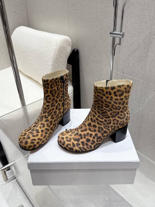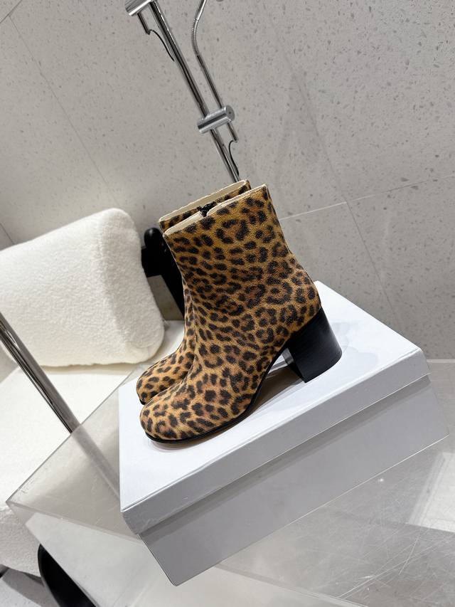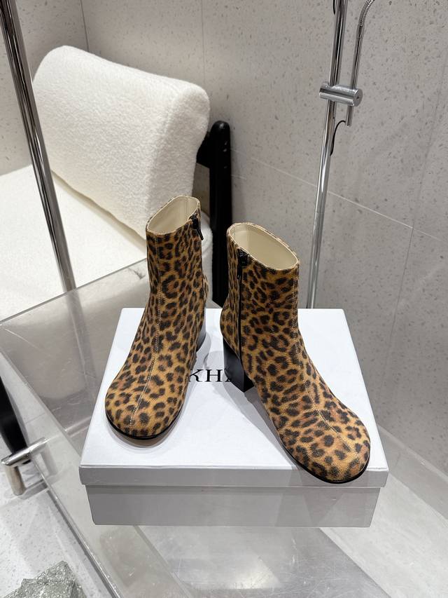 Loewe 秋冬新品粗跟圆头裸靴侧拉链短靴