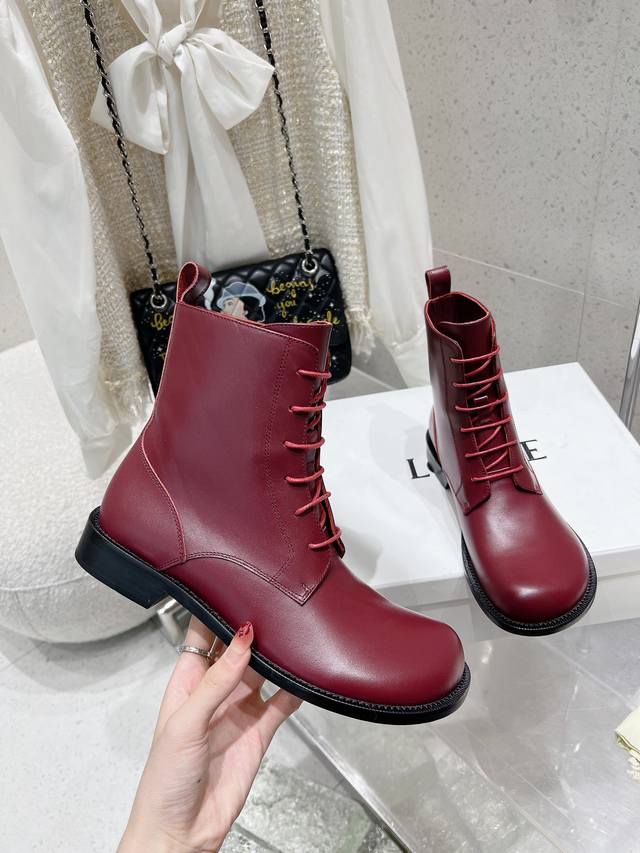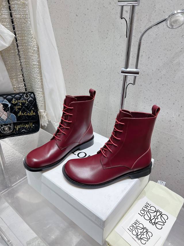 / 出厂 Loewe 罗意威 秋冬新款 绑带圆头牛皮平底时装靴短靴 简约大气时髦 耐看不过时 是时尚圈永不退潮的经典所在 复古的英伦风格 让你穿出不一样的气质.对版
