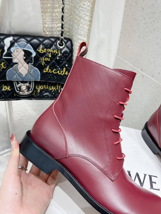 出厂 Loewe 罗意威 秋冬新款 绑带圆头牛皮平底时装靴短靴 简约大气时髦 耐看不过时 是时尚圈永不退潮的经典所在 复古的英伦风格 让你穿出不一样的气质.对版