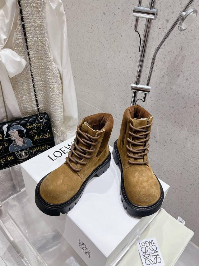/ 出厂 Loewe 罗意威 24Ss 秋冬新款 娃娃头 绑带马丁靴 简约大气时髦 耐看不过时 是时尚圈永不退潮的经典所在 复古的英伦风格 让你穿出不一样的气质.对