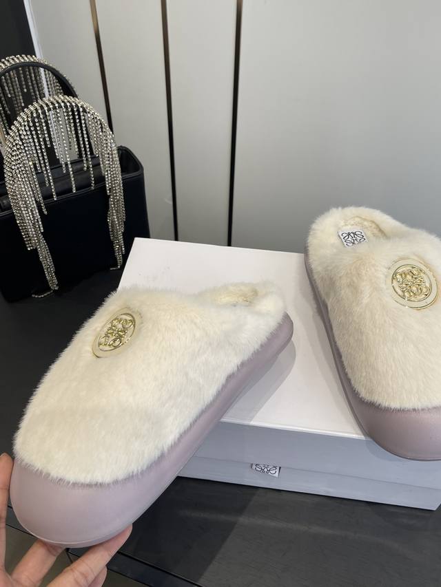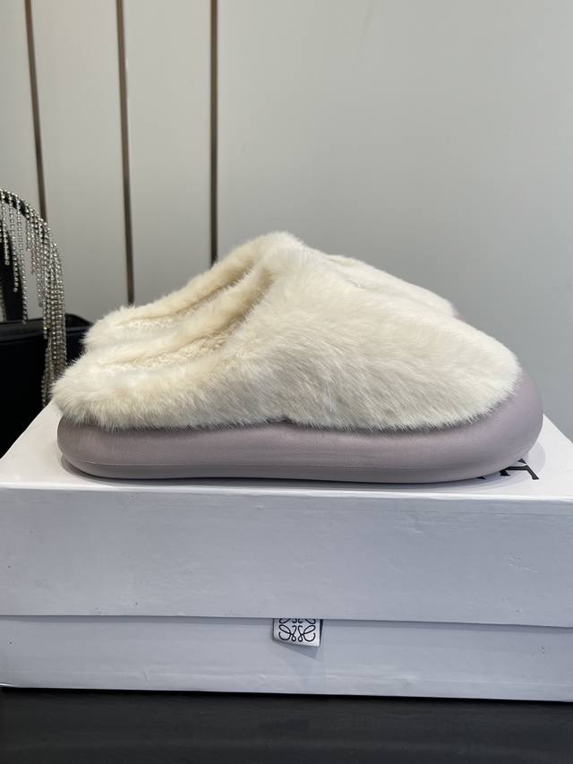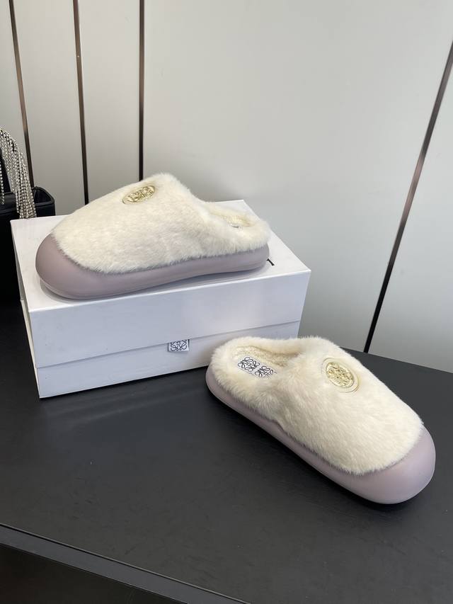 / 罗意威新款 秋冬必备一脚蹬勃肯半包拖鞋 时髦精必入单品 超级跑量系列 毛茸茸 软糯糯的居家外穿都 舒适百搭 慵懒又时髦! 精选进口毛绒材质 原版模具发泡大底 尺