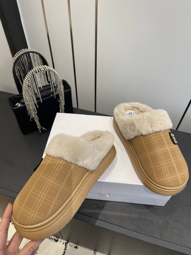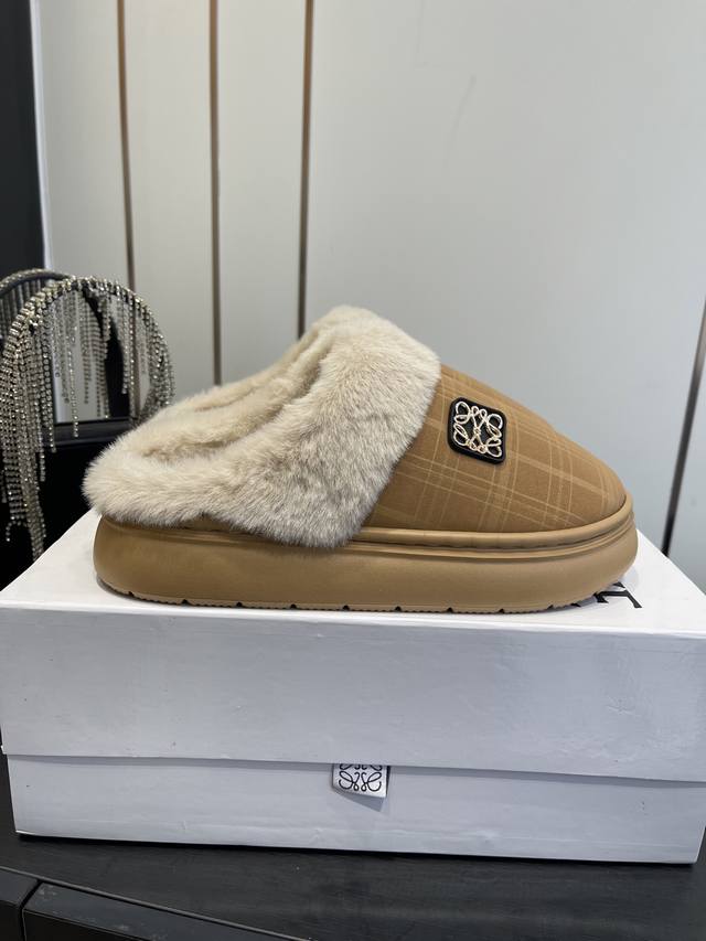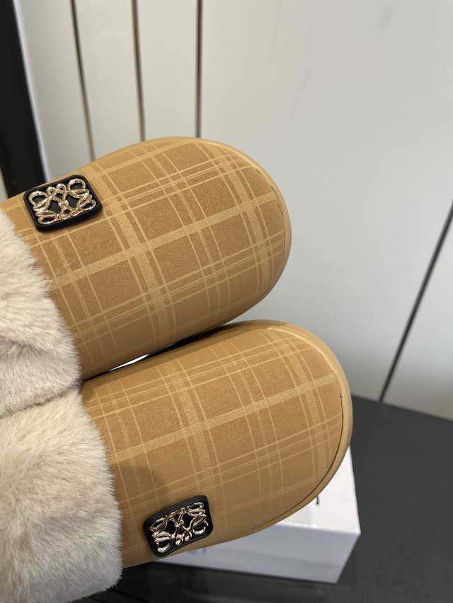 / 罗意威秋冬火爆新款 超有辨识度的可爱毛毛拖鞋,简约的时尚设计,配合整体原版楦型,时尚舒适好穿. 面料:原版进口布面 内里 垫脚:环保编织毛绒 大底:原版大底 码