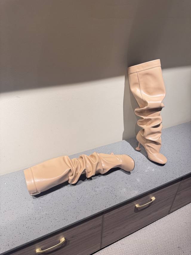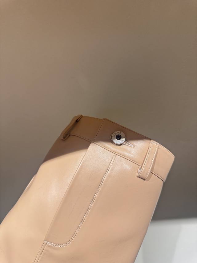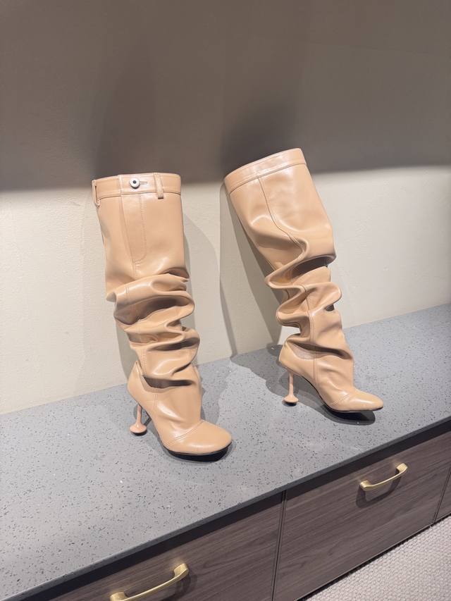 罗意威Loewe经典超长裤腿靴 标志性的头型、烤漆异形跟、以及长裤纽扣设计。