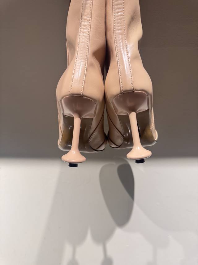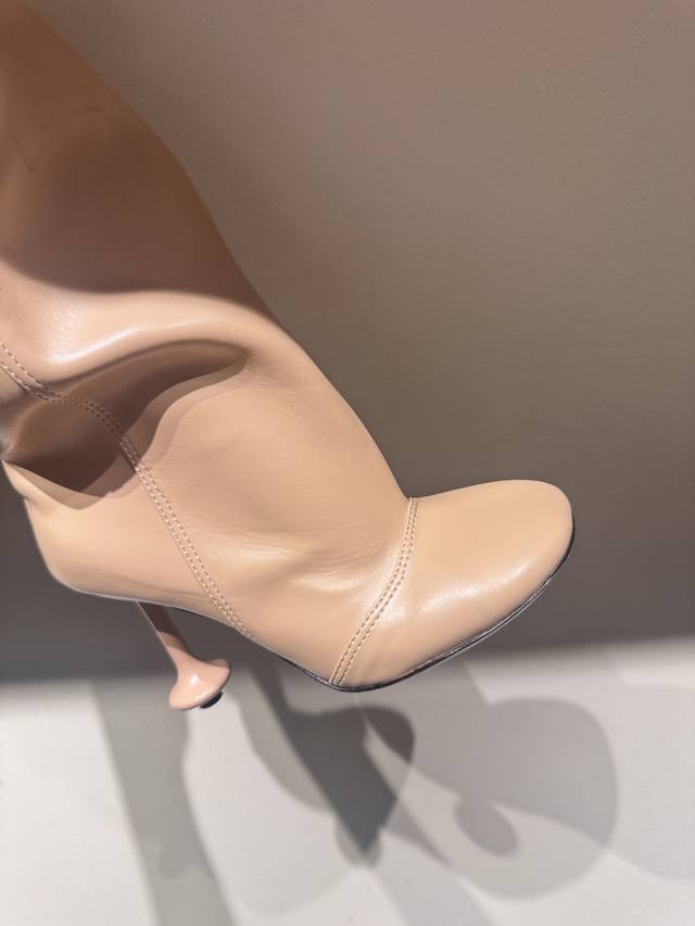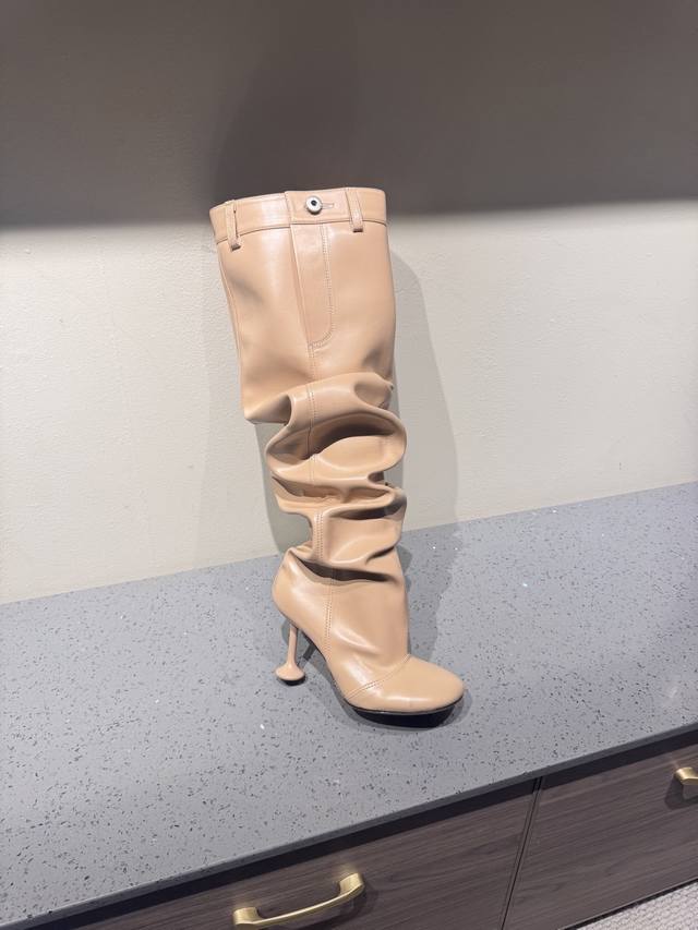 罗意威Loewe经典超长裤腿靴 DDD 标志性的头型、烤漆异形跟、以及长裤纽扣设计。 DDD