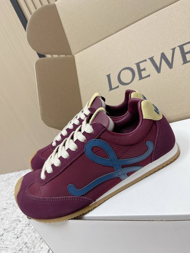 顶级版本:情侣款 Loewe 罗意威 最新走秀款 Ballet Runner 2.0情侣款 芭蕾 休闲 运动鞋 德训鞋 阿甘鞋 原版购入开发 做货 尼龙和牛皮革
