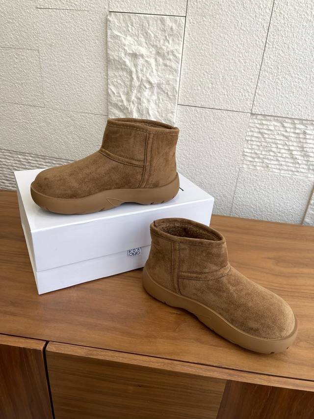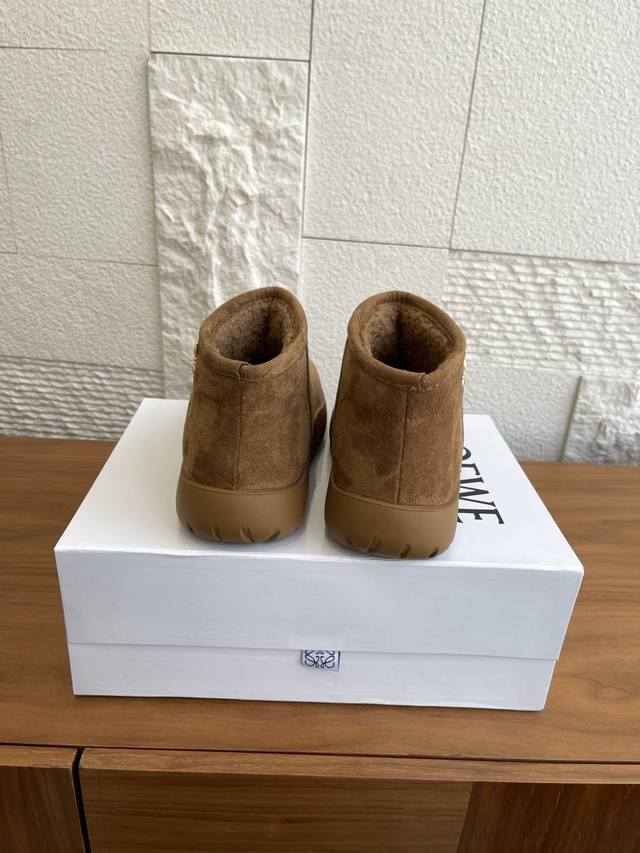 顶级版本: Loewe罗意威 2025 秋冬新款 羊毛雪地靴 Loewe 秋冬新款羊毛雪地靴,羊皮毛一体正绒面工艺,质感细腻又耐用!内里加绒,保暖满分,冬天穿超