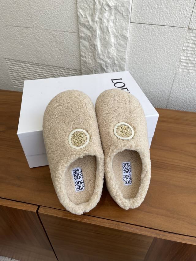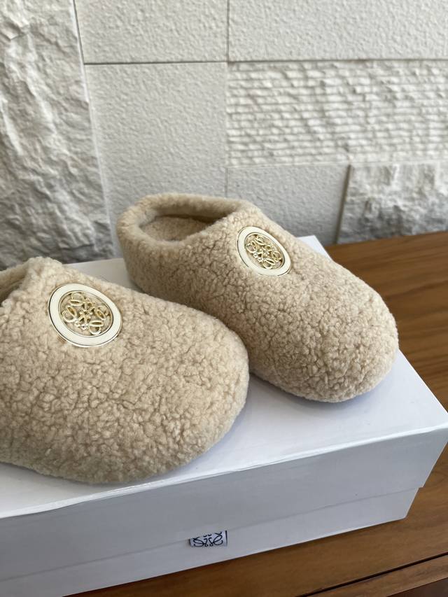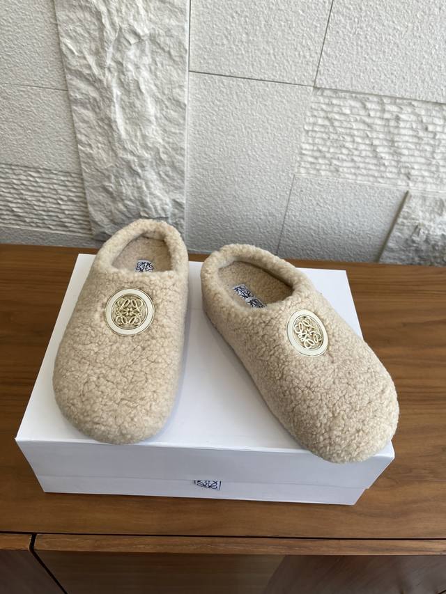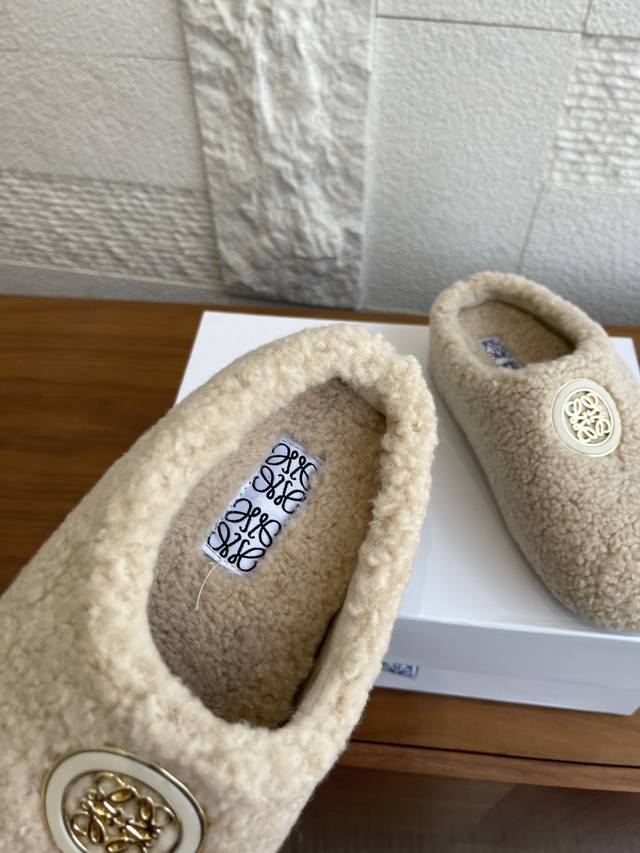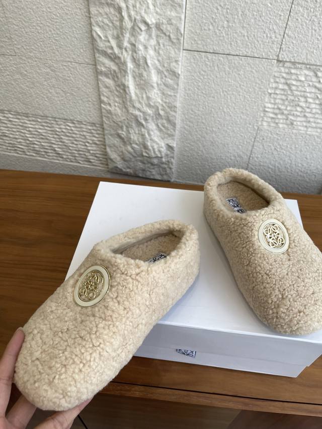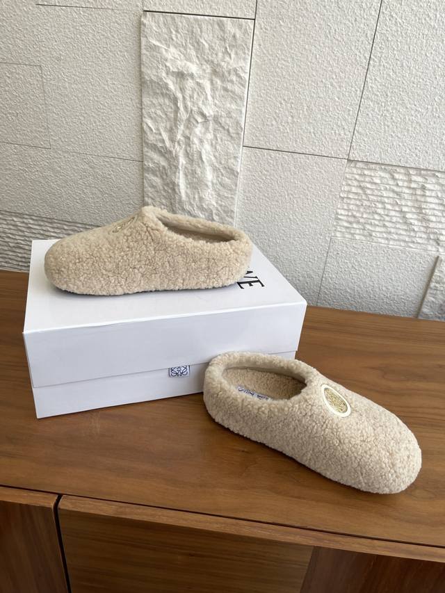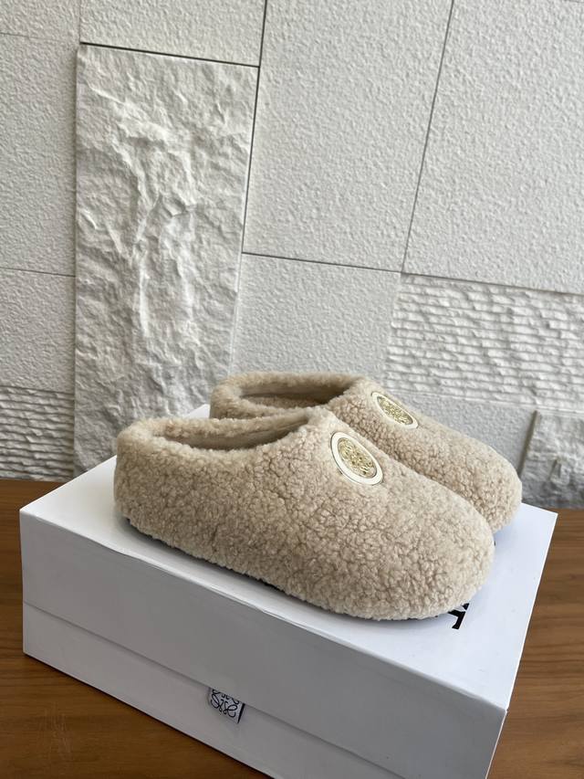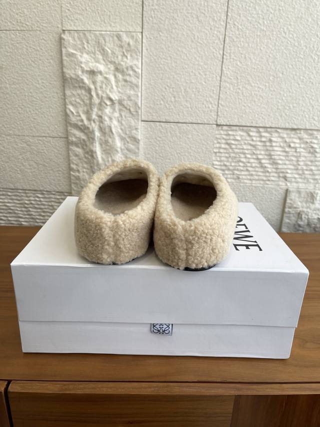顶级版本: Loewe罗意威 2025 秋冬新款 Ease系列 一脚蹬 包头拖 半拖 勃肯鞋 Loewe罗意威Ease三连花瓣头勃肯拖鞋,一脚蹬设计超方便!鞋面选用进口羊羔毛,穿着舒适又保暖。三连花瓣头+金属Anagram徽标,辨识度超高!一脚蹬设计,穿脱方便,秋冬居家或外出都很适合,时尚又实用,舒适感满分~ 面料:进口羊羔毛绒 内里:进口羊毛 大底:原版开模Pu底台+发泡底片 Size:35-40 40定做不退换