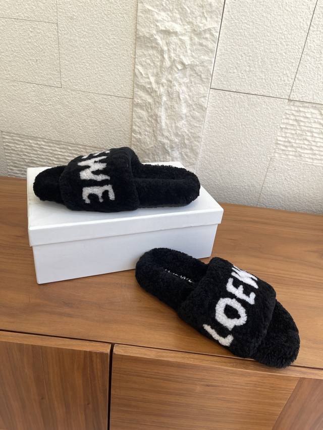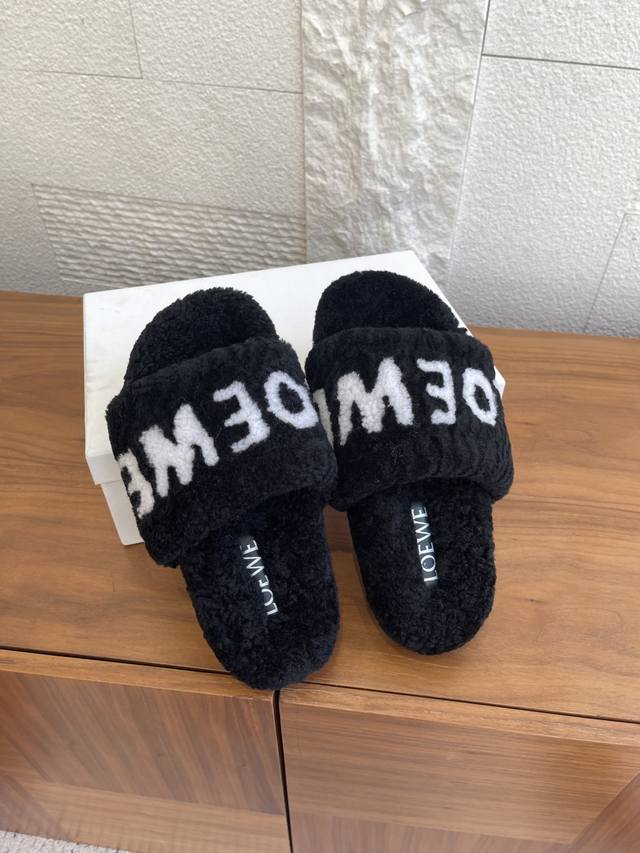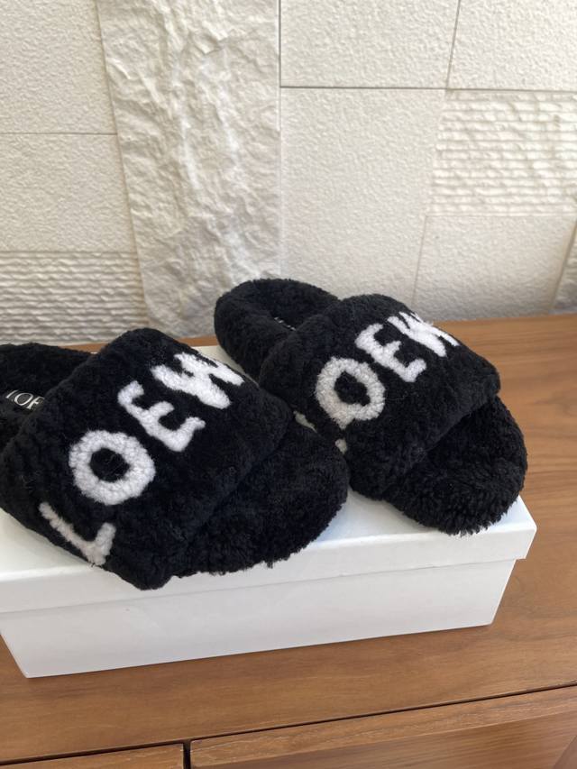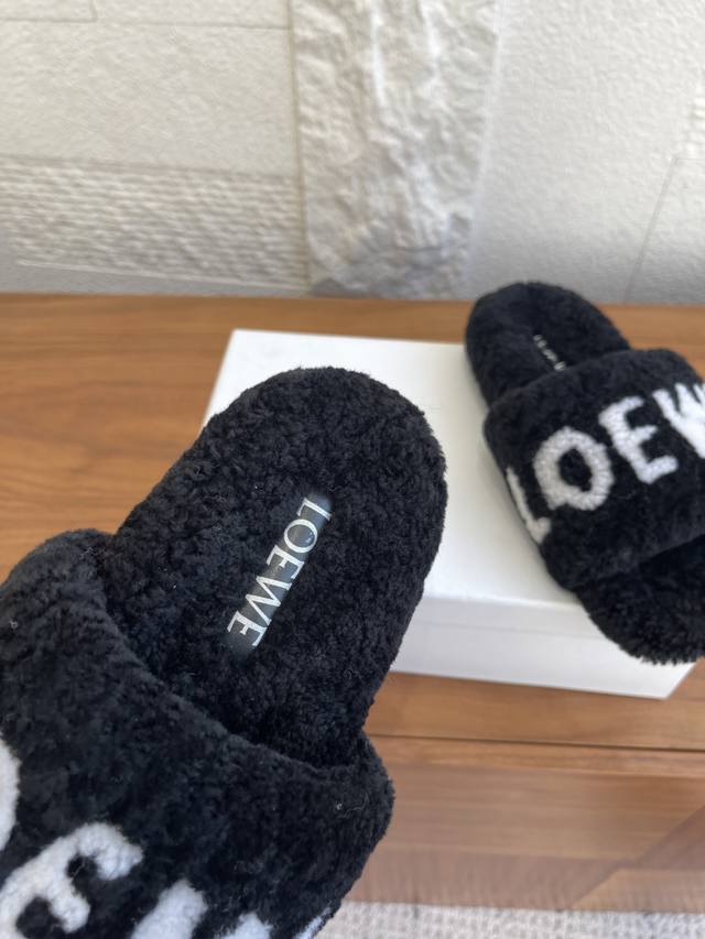顶级版本: Loewe 罗意威 25Ss 秋冬新款 字母印花 毛拖 Loewe罗意威这款毛毛拖鞋来了,大字母徽标印花,质量杠杠好的,一上脚有种被包裹的感觉,像踩