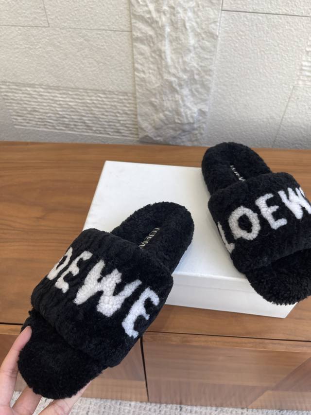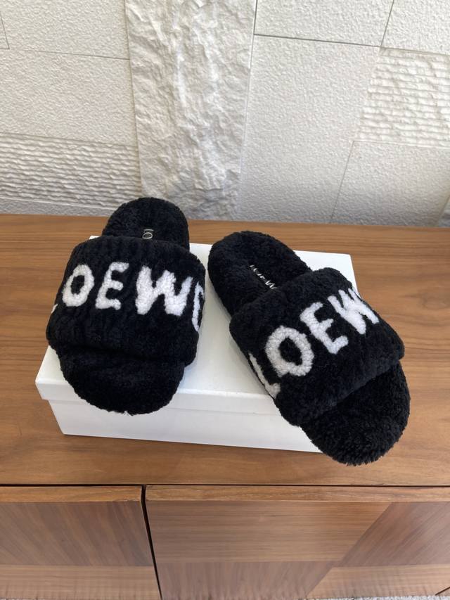 / 顶级版本: Loewe 罗意威 25Ss 秋冬新款 字母印花 毛拖 Loewe罗意威这款毛毛拖鞋来了,大字母徽标印花,质量杠杠好的,一上脚有种被包裹的感觉,像踩