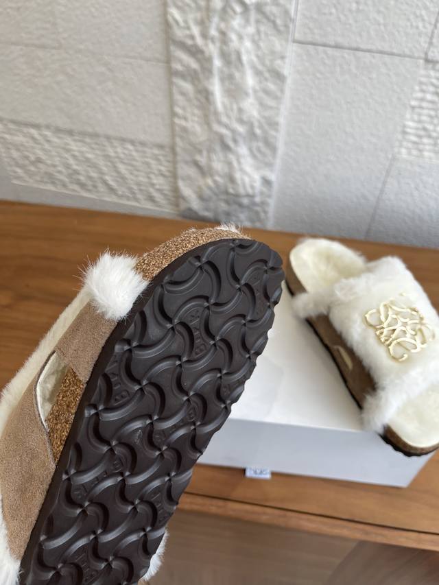顶级版本: Loewe 罗意威 X Birkenstock 勃肯 联名款2025 秋冬新款 情侣款 毛毛鞋 这款博肯皮革绒面羊毛,时尚羊毛拖鞋,牛皮绒面革质组合羊毛内里和垫脚,质地柔软,提升穿着舒适度。人体工学设计分散脚部压力 保护脚踝 软木乳胶鞋床具有一定的收缩性 长时间穿着后能贴合脚型 Eva鞋底回弹性和抗张性力高 具有良好的防震、缓冲性 四季皆宜 柔软的鞋床采用额外的泡沫缓冲层 提供额外的舒适感和全天支撑 面料:进口牛皮绒 内里 垫脚:进口羊毛 大底:原版开模大底 Size:35-45
