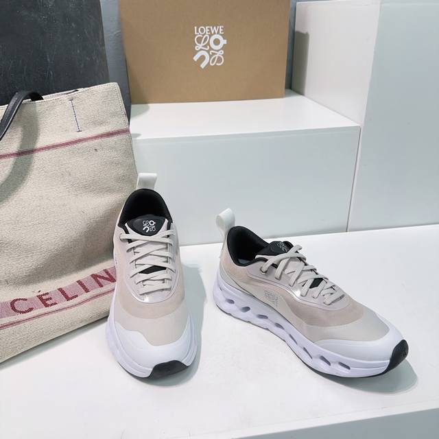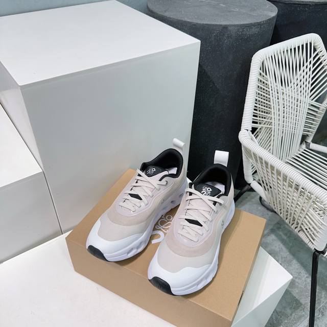 高品质出厂女 !男270!顶级品质情侣款!25春夏新款Loewe罗意威 X On Cioudtilt2.0跑鞋情侣款! 罗意威 Xon 昂跑全新合作系列 时尚,品牌与瑞士高性能运动品牌On携手打造的此系列作品专为城市与户外生活而设,充分彰显蕴含可持续理念的科技品质。由再生聚酯纤维和网眼布制成,采用独家橡胶鞋底,鞋侧印有Loewe罗意威经典Logo,饰有全覆盖贴缝细节。此次合作,将On昂跑专业技术和Loewe罗意威的精湛工艺结合,运用在的制作和设计中,专为城市生活和户外运动打造!原版开模发泡大底!上脚超级轻