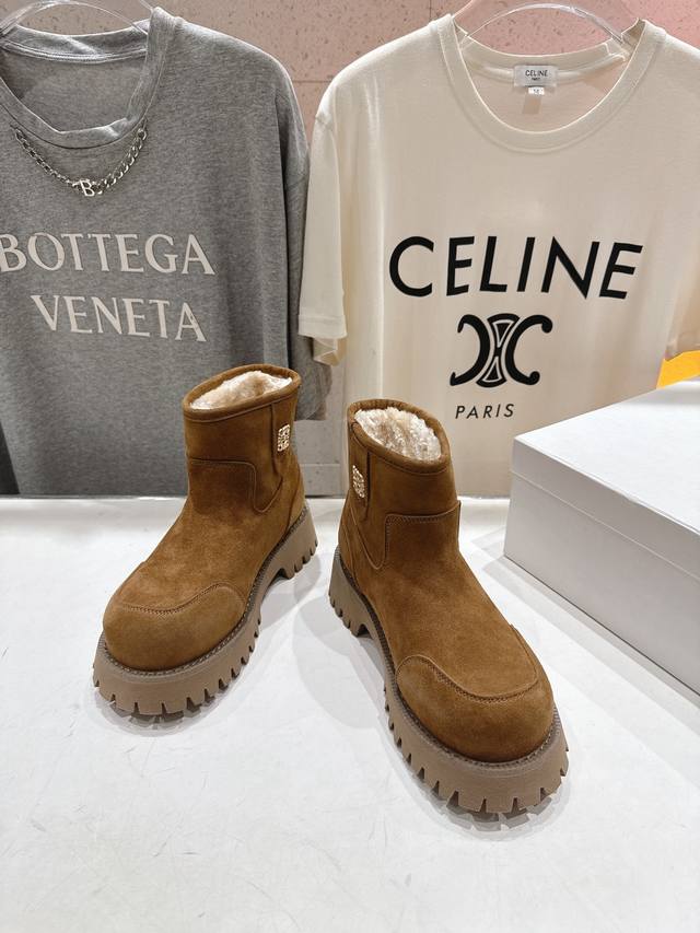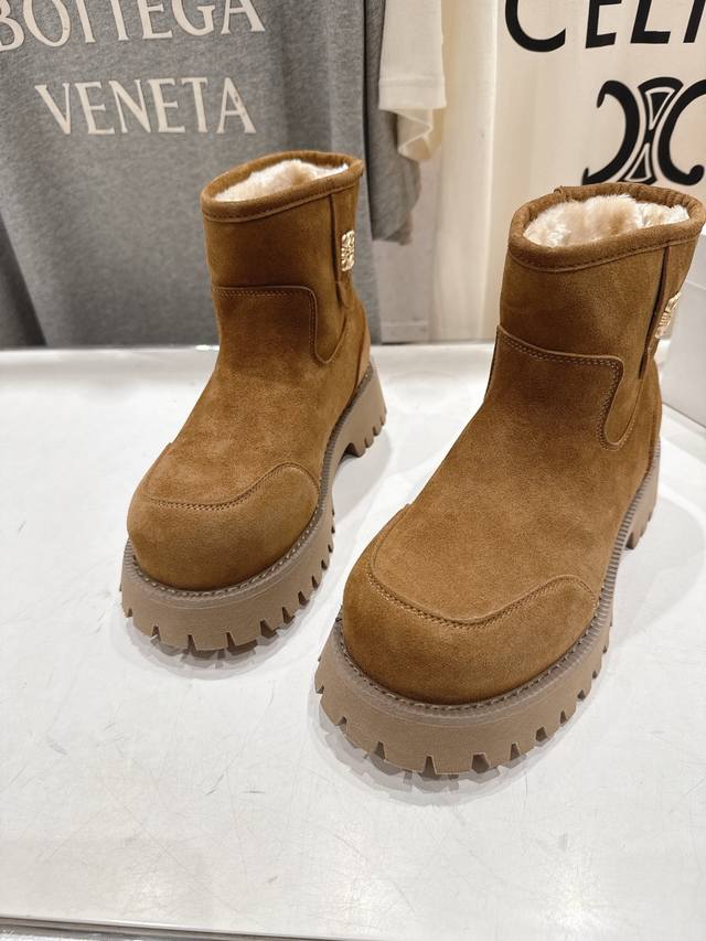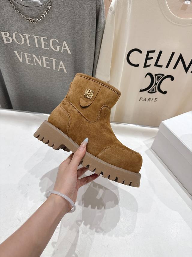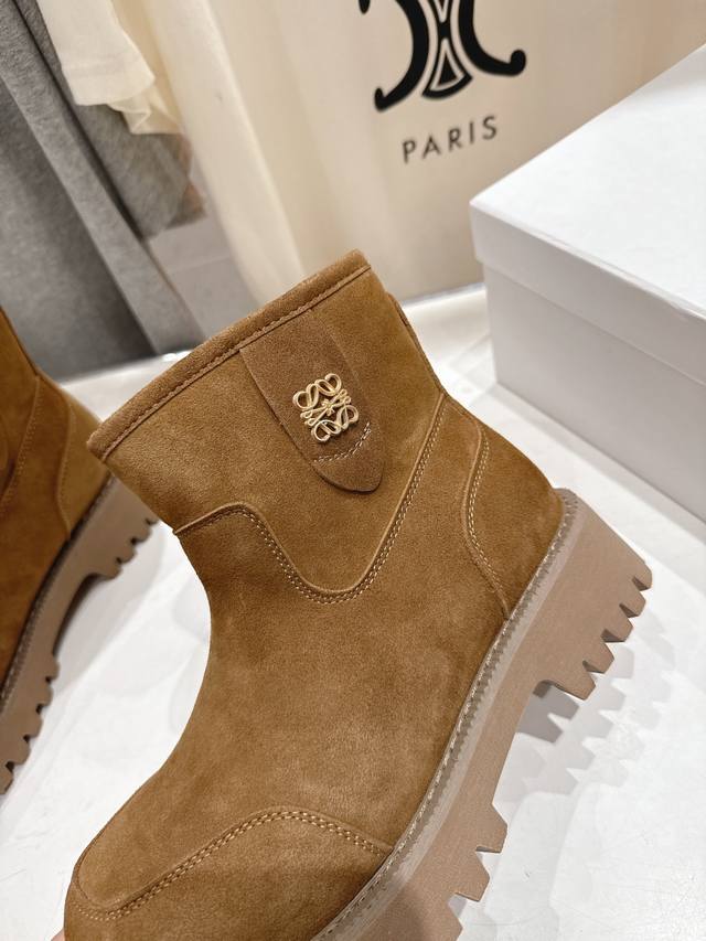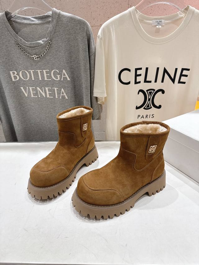 高版本出厂 Loewe 罗意威F036 25Ss冬季最新保暖雪地靴羊毛靴短靴 顶级版本,这么保暖还能这么轻这么软乎的靴子也只能是罗意威了吧 轻盈柔软。上脚非常可