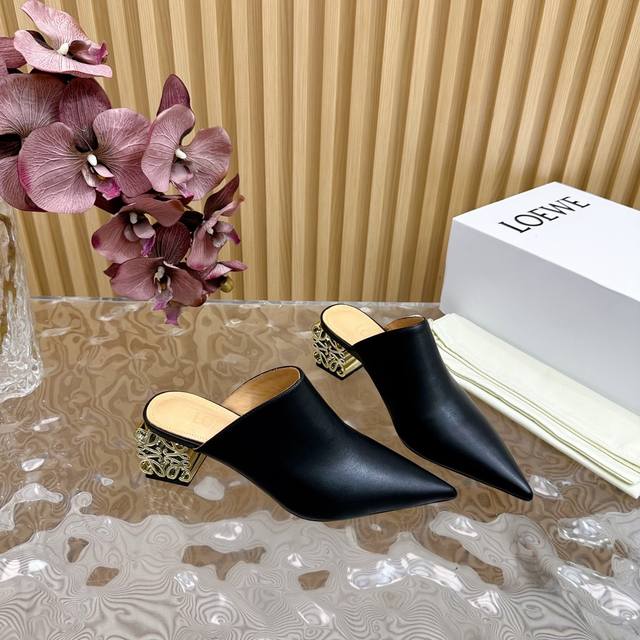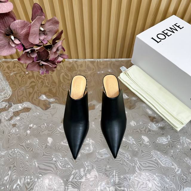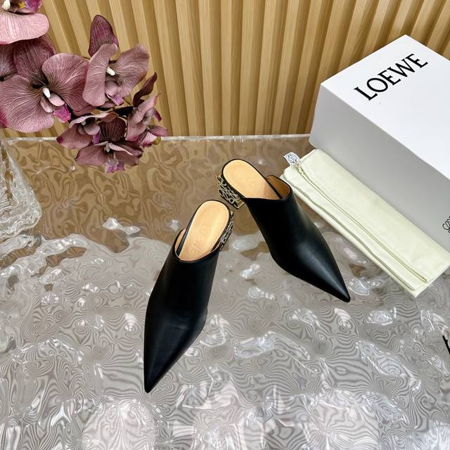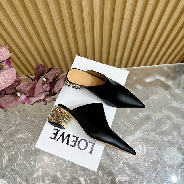 高版本 Loewe罗意威 新款方跟尖头中跟气质穆勒半拖 DDD 自带优雅气质高级的一款,时尚尖头设计提升气场,新款珍珠饰扣Logo搭配一字带跟露后跟的设计结合,少了一份随意,多了份“仪式感” DDD 露后跟设计穿脱方便,对抗炎炎夏日4.5Cm的小猫跟恰到好处,健稳好走,上脚拉长腿部线条,女人味十足。 DDD 不管是职场还是日常搭配约会逛街,都可以带上它参与,因为她真的超显气质又百搭。 DDD 面料:牛皮 DDD 内里:羊皮 DDD 大底:真皮大底 DDD 跟高:4.5Cm DDD 码数:35 41 40、