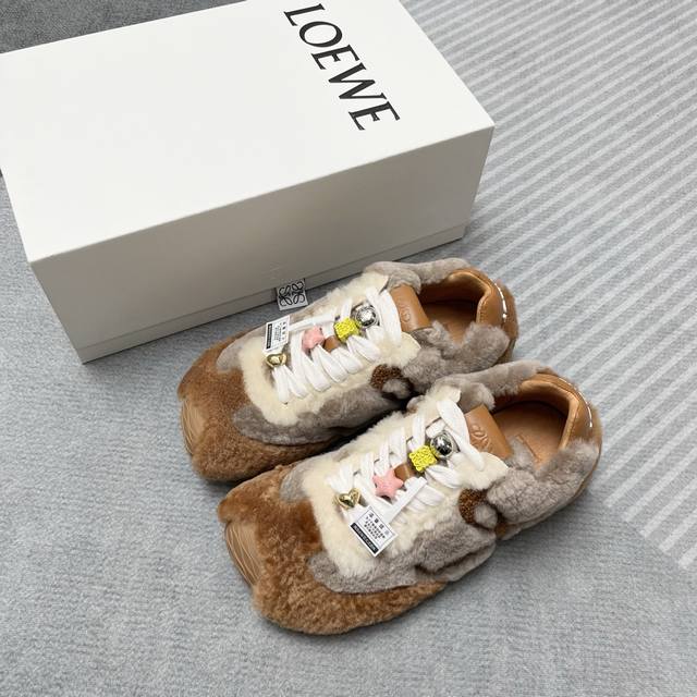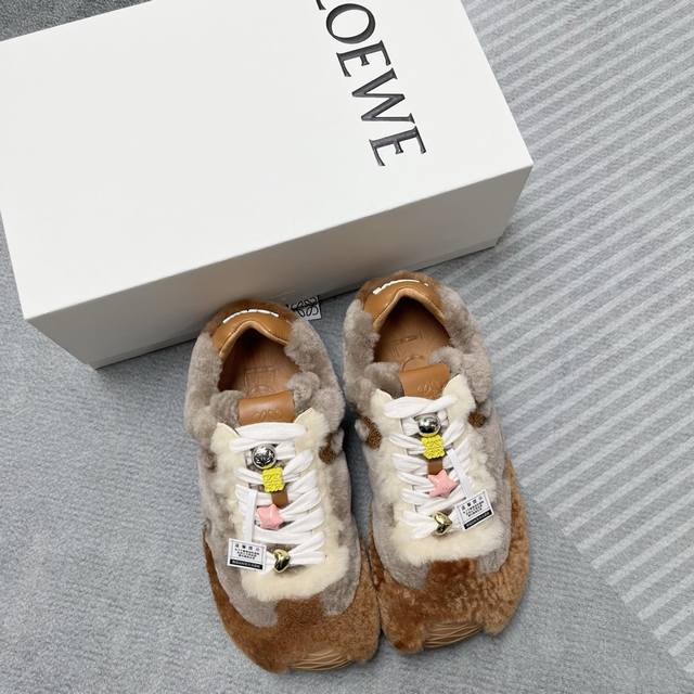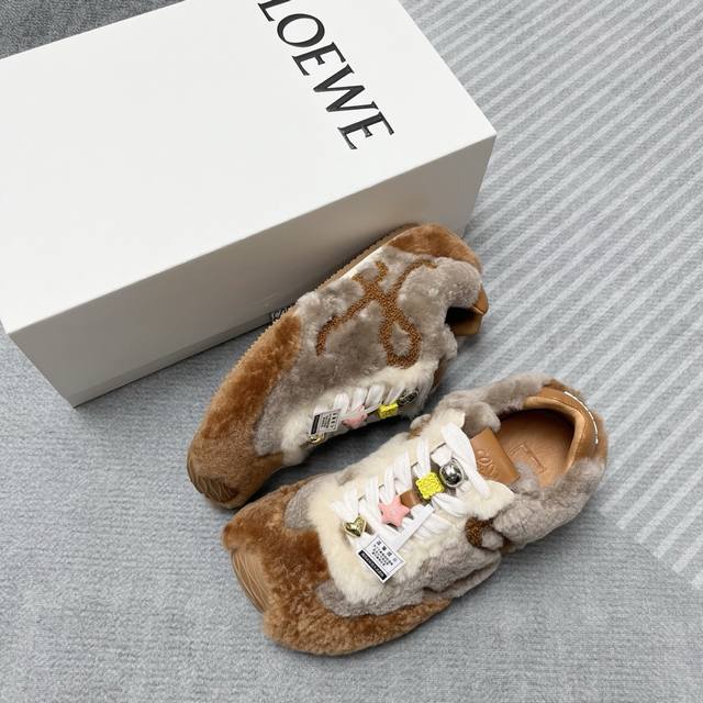 高版罗意威毛毛鞋新色来袭 DDD 25款秋冬新款 罗意威来袭 DDD Loewe 罗意威 2025新款羊羔毛丑萌鞋头阿甘厚底内增高德训鞋! 装饰可拆卸 DDD 2025新款 羊羔毛拼接牛皮,柔软舒适,鞋子有点丑萌,不对称鞋头设计,鞋子搭配五彩串珠,太可爱了!波浪纹理大底,整片大底贯穿鞋头,鞋底、鞋尾,柔软轻便舒适:脚感无敌,被评为最舒适的暴走款、 如履平地原版细节!低帮鞋型侧面有品牌Logo的首字母,鞋柜必备款! DDD 鞋面:羊羔毛, DDD 内里:环保羊皮, DDD 鞋垫高弹力pvc贴合羊皮, DDD