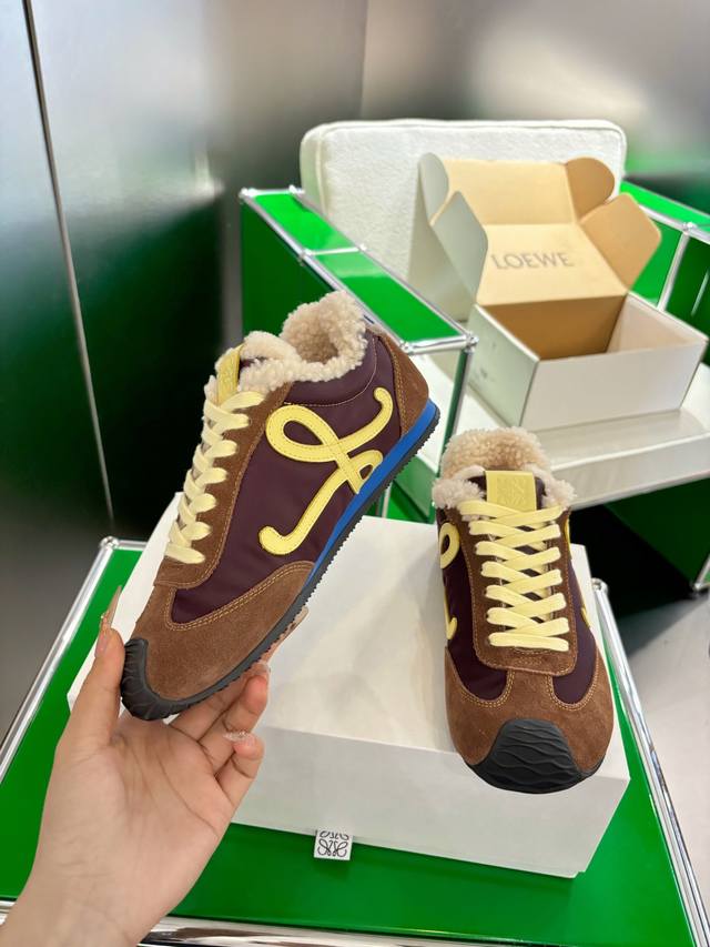 K051Loewe 2025巴黎时装周新Balletrunner 芭蕾运动鞋毛里 经典一眼就爱上的!拼接的极简风格真的做到极致!实在太百搭,随便穿搭就可以很高级,很轻便,逛街暴走无压力!上脚无敌舒适,轻盈无负重感,出街真的爱了!不打脚还有点小增 高 鞋面材质:牛皮拼接原版布料 鞋里材质:羊皮 鞋底材质:耐磨橡胶组合底可选 尺码:35-45