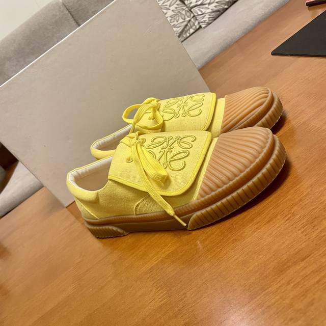 / –Loewe罗意威刺绣大翻帆盖布鞋饼干鞋最近大的热一款鞋,翻刺舌绣Logo设计,超可级爱 时髦精绝对不能过错的必入款,没任有何繁杂装饰,质极感好的Vintage