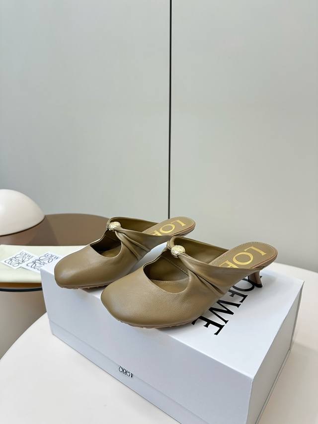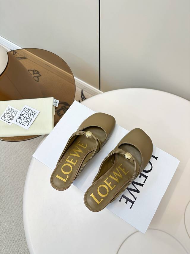Loewe|罗意威玛丽珍时尚羊皮猫跟半拖鞋 罗意威这双小羊皮玛丽珍鞋真的美到窒息!搭配金色Pebble圆球装饰,随便搭裙子Or牛仔裤都超有氛围感~软敷敷的云朵半