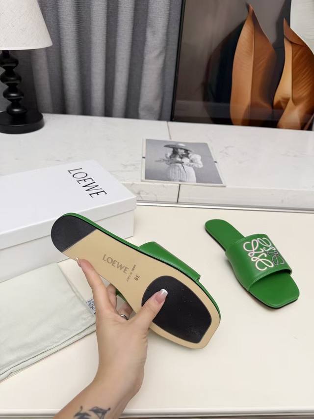 Loewe罗意威2026早春新款拖鞋35-43像胶底 。真皮底