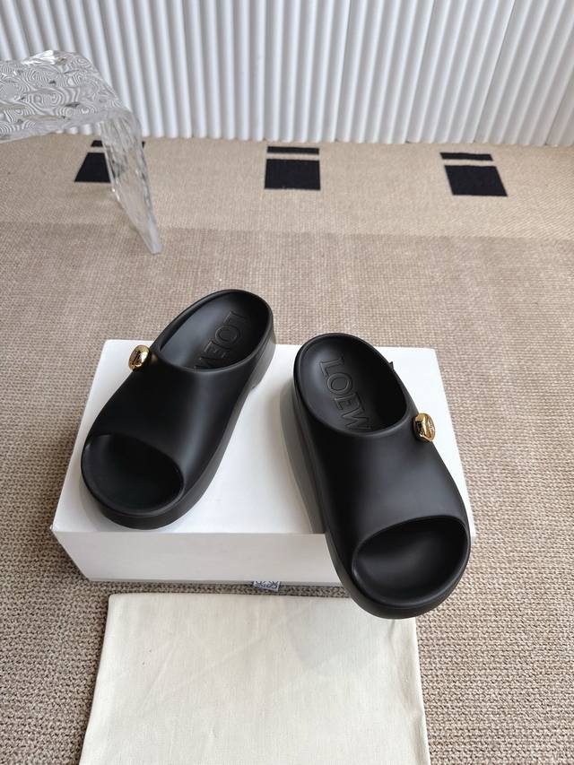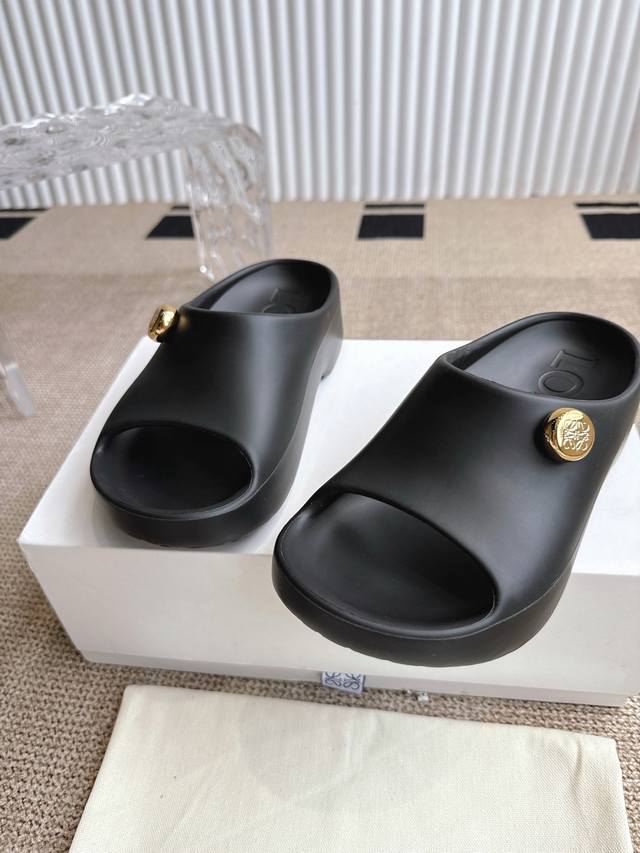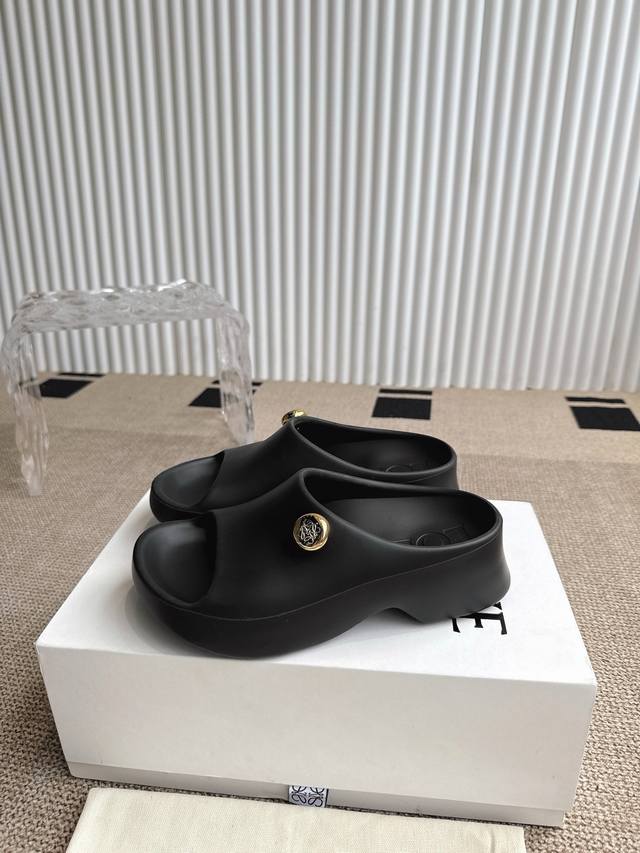 Loewe 罗意威夏季Pulas限定时尚拖鞋 版本 超轻拖鞋,超舒服,可湿水,去沙滩穿超合适的,颜值也很高,高度2Cm那样,夏季必备款感 橡胶发泡一体成型!电镀