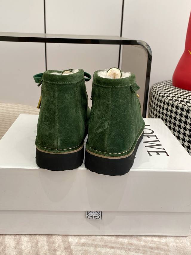 Loewe 罗意威 25秋冬新款 羊毛短靴 新品 实力来袭 圆头圆脑的鞋头可可爱爱 一鞋两穿 后跟可踩下当英伦拖 超好搭配 上脚软软糯糯 超级无敌舒适 面料:进口麂皮 内里: 羊毛大底:超轻发泡大底 Size:35-41 40 41 订做不退换