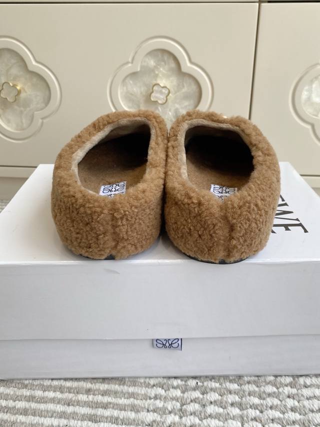 Loewe 罗意威 25Ss秋冬新款一脚蹬勃肯 毛毛拖鞋 进口羊羔毛材质 舒适度极高 非常具有辨识度 美貌与实用并存舒适而不单调的毛毛拖 鞋面进口羊卷毛 内里垫脚进口羊毛原版开模耐磨橡胶大底 码数:35-40 40定做不退换