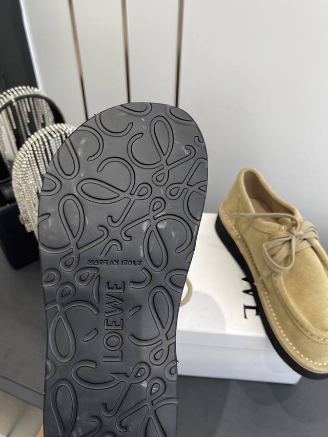 Loewe 罗意威 25Ss秋冬新款 乐福鞋 新品 实力来袭 圆头圆脑的鞋头可可爱爱 一鞋两穿 后跟可踩下当英伦拖 超好搭配 上脚软软糯糯 超级无敌舒适 面料:进口牛皮 麂皮 内里: 羊皮 大底:超轻发泡大底 码数:35-40 40 订做