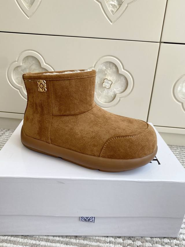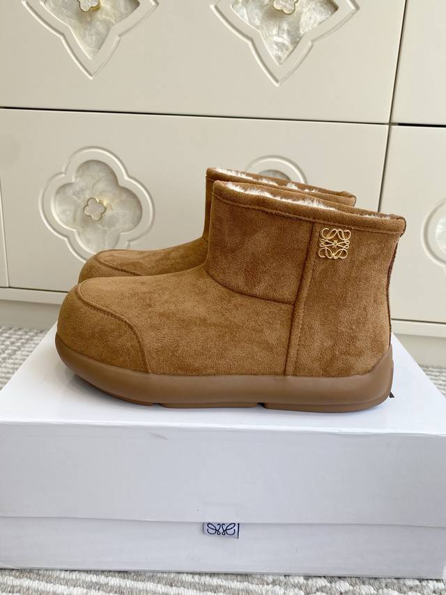 Loewe 25Ss 秋冬新款 羊毛短靴 雪地靴 罗意威皮毛一体靴俺就说能保暖还能这么轻这么软乎的靴子也只能是罗意威了吧羊皮毛一体的材质 轻盈柔软 外面做的正绒面工艺 有麂皮的质感的同时 但非常的经久耐用 传承与经典来自 Loewe 只能说脚感无敌保暖只有穿上的那一刻才懂 面料原版羊羔毛皮毛一体原版开模防滑鞋底 码数:35-40 40定做不退换