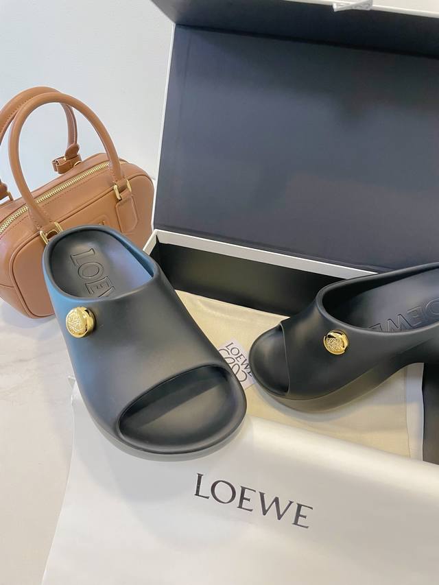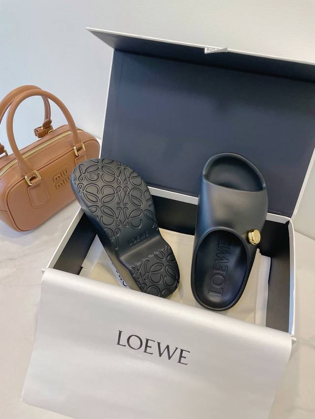 Loewe Foam Pebble 凉鞋轻质泡沫橡胶凉鞋,饰以闪亮金属饰面Anagram Pebble,人体工学构型 舒服的法式休闲感~丑萌丑萌,有趣的灵魂!都