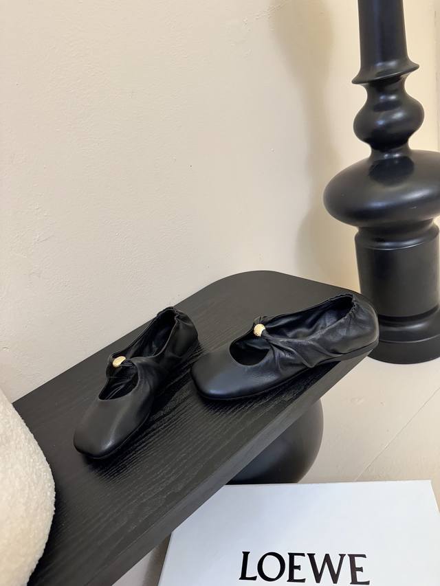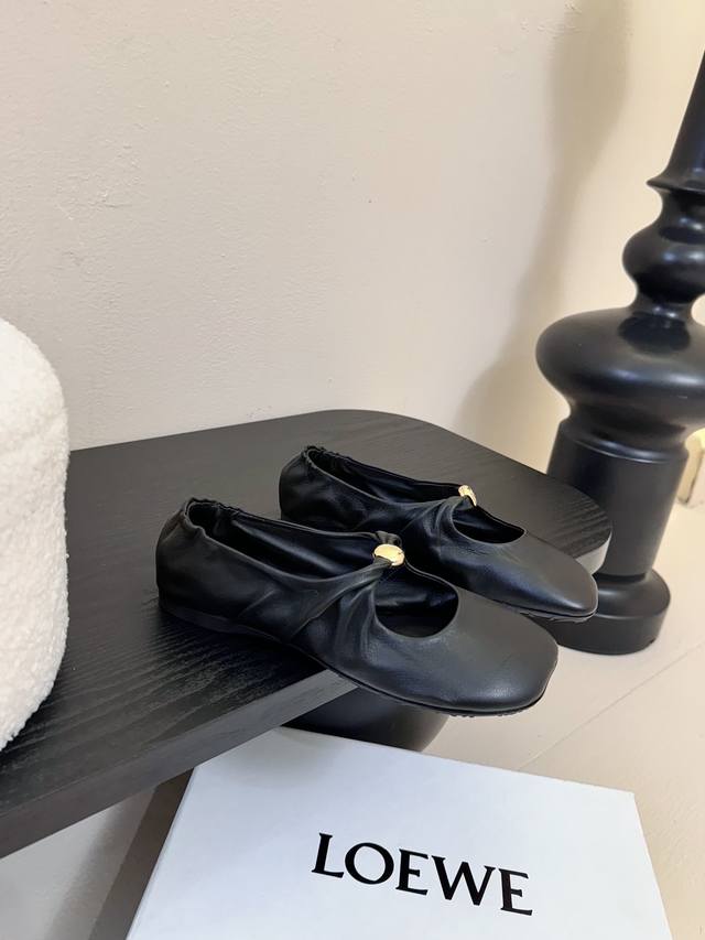 / 实价 Loewe 25Ss超软糯嘟嘟同款芭蕾舞鞋这款Pebble Soft 是芭蕾平底鞋与穆勒鞋的优雅结合,彰显出初秋的摩登气质采用超柔软羊皮打造,鞋底饰有 A