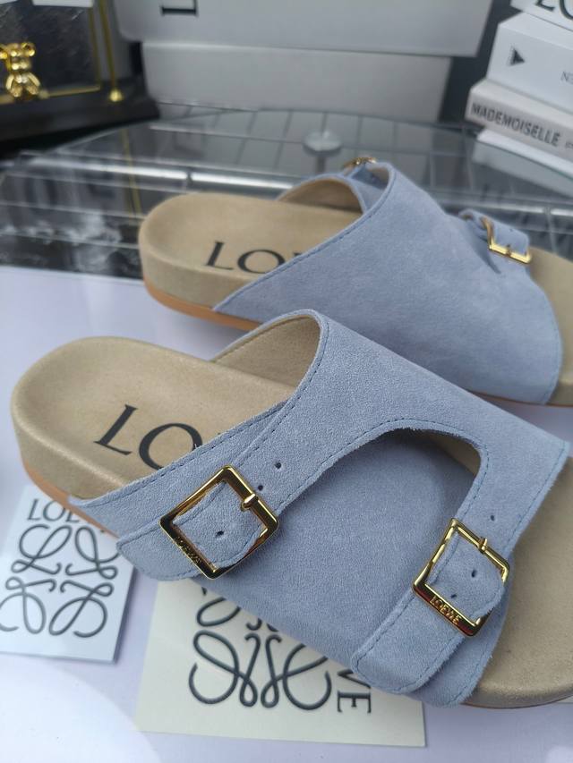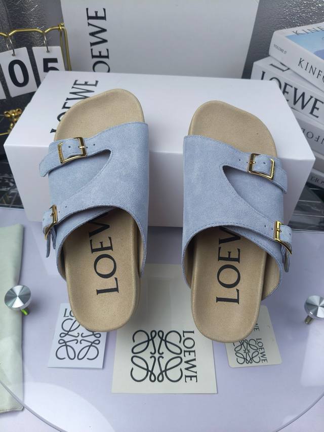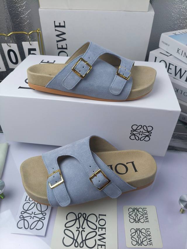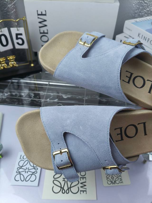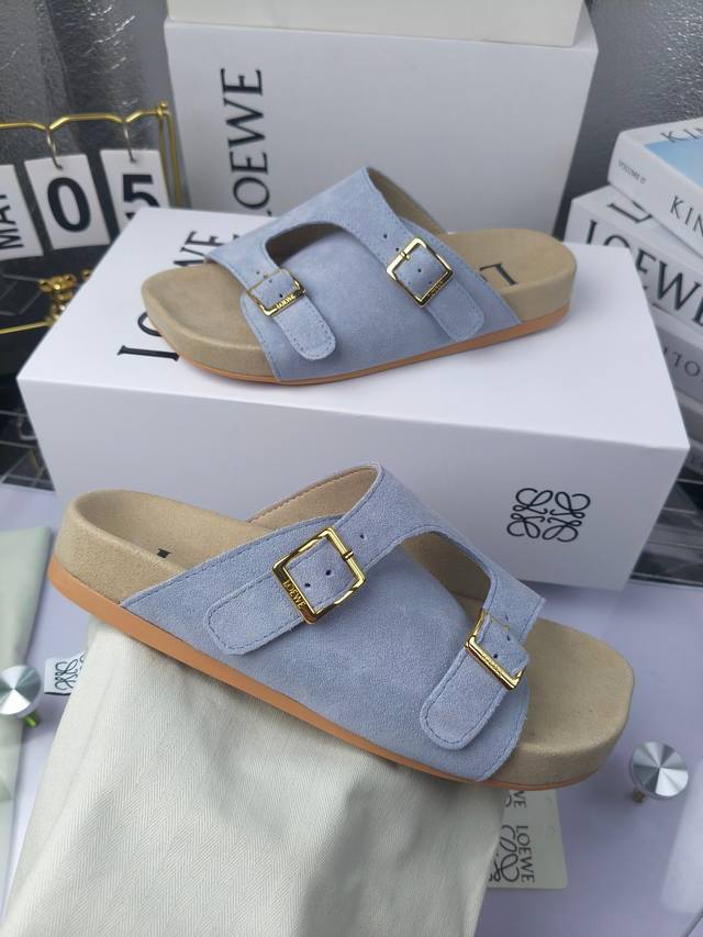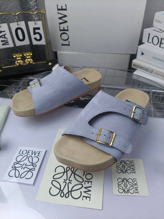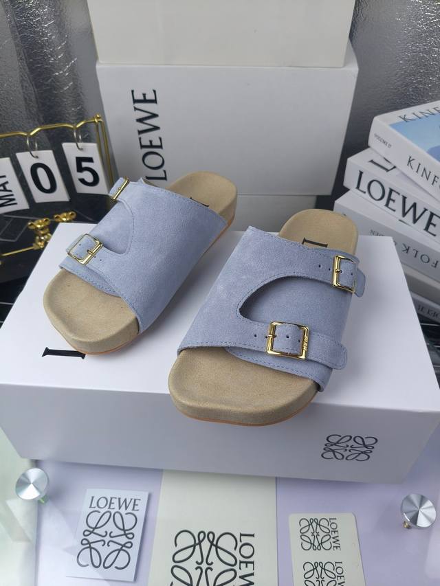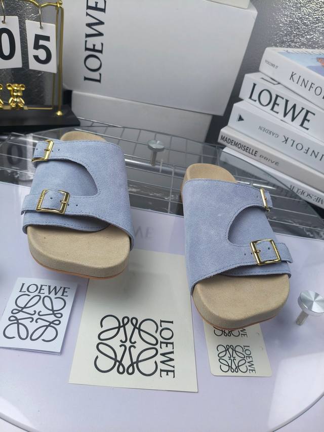 / Loewe 罗意威2025新品勃肯拖鞋上新,火爆新款 配合整体原版楦型,时尚而个性好穿 颜色超赞 面料:高丝光牛反绒 内里:吸汗透气牛绒 垫脚:吸汗透气牛绒 大