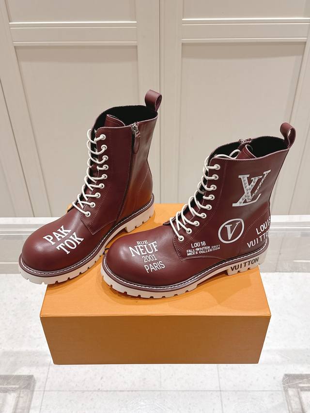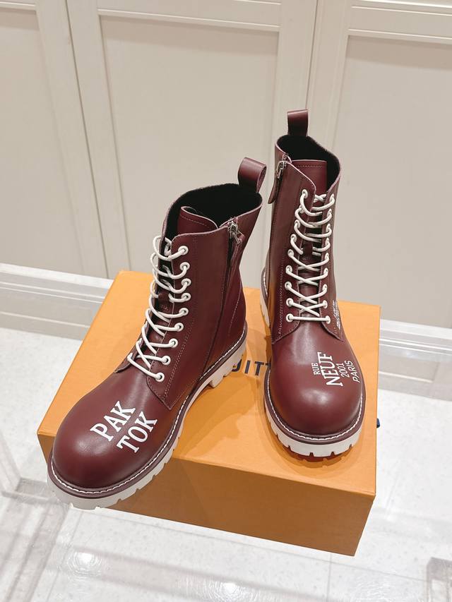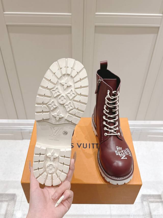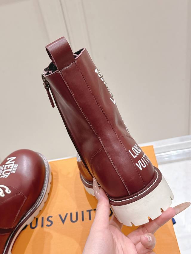 不是所有复刻,都值得 一眼万年 DDD Lv路易威登2025秋冬短靴 官网同步 DDD 我们用代购级质感,重新定义高级 DDD 圆头新楦型,勾勒足尖美学轮廓 DDD 立体剪裁如温柔雕塑,贴合脚踝线条 DDD 进口牛皮细腻亲肤,触感已见高下 DDD 品牌字母涂鸦铆钉元素,前绑带与内侧拉链,慵懒穿脱也从容 DDD 厚底中跟悄悄拉长腿型,比例一秒觉醒 DDD 加厚防滑轮胎底,步履生风仍优雅 DDD 搭 #Lv短靴 #高级感Oot DDD D一双鞋,是你每一步的姿态宣言 DDD 从材质到型格,细节皆不将就 DDD