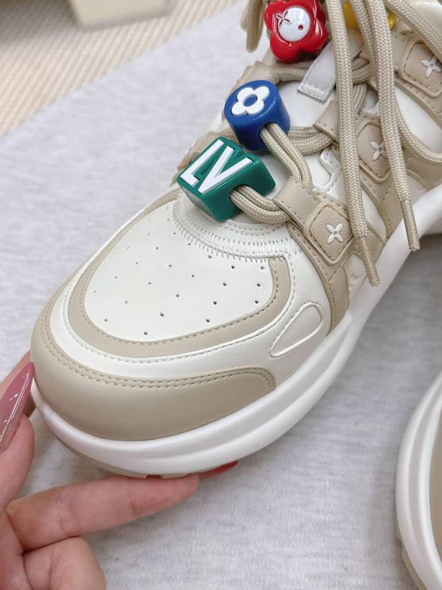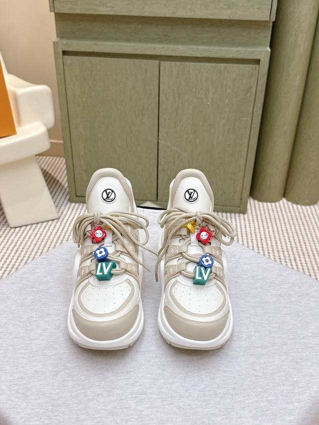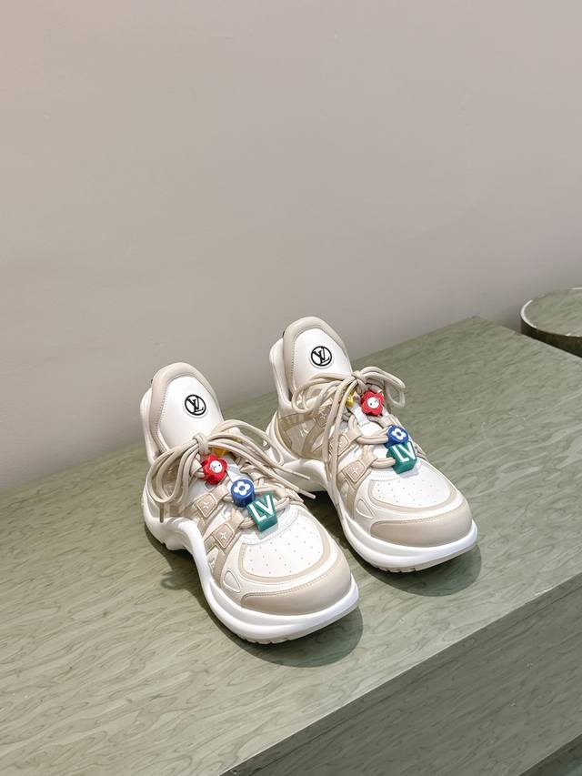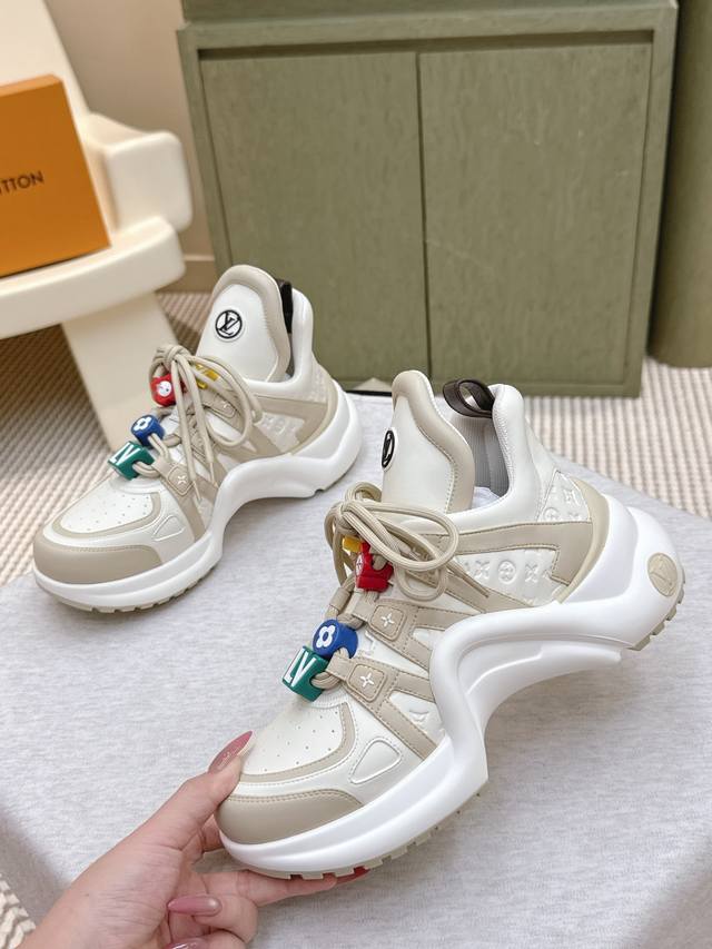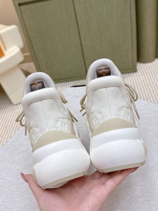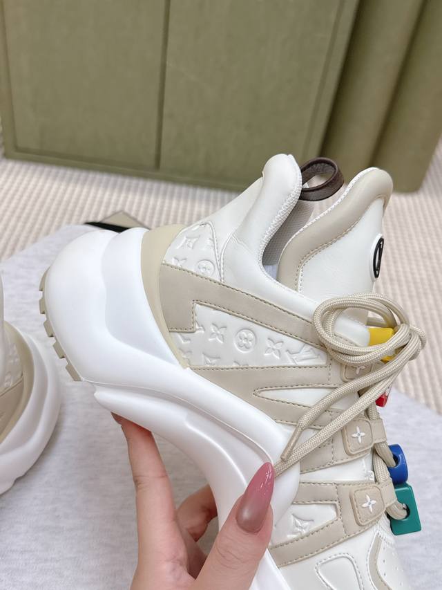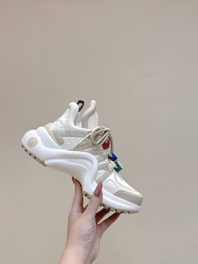 东莞代购级 扣子10|D1155 官网同步盒包装 全新升级Louis Vuitton 路易斯威登 25 老爹鞋 拱桥运动鞋 太空鞋 原版购入开发 做货 Lv Archlight 运动鞋出自 Nicolas GhesquièRe 之手,此次洋溢 搭配素净和金属质感牛皮革饰边。宽大鞋舌和弹力波浪形外底延续经典设计,后者巧妙增加视觉高度。Monogram 帆布后袢带完善细节。 面料: 进口头层牛皮 内里:原版定制透气网里+牛皮垫脚 鞋底:原版开模正版U型拱桥大底 底厚:5Cm Size:35-41 41订做不退